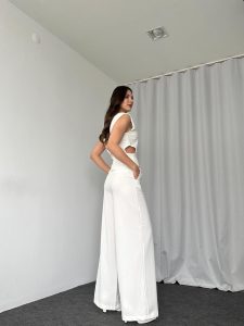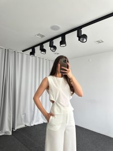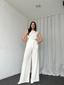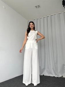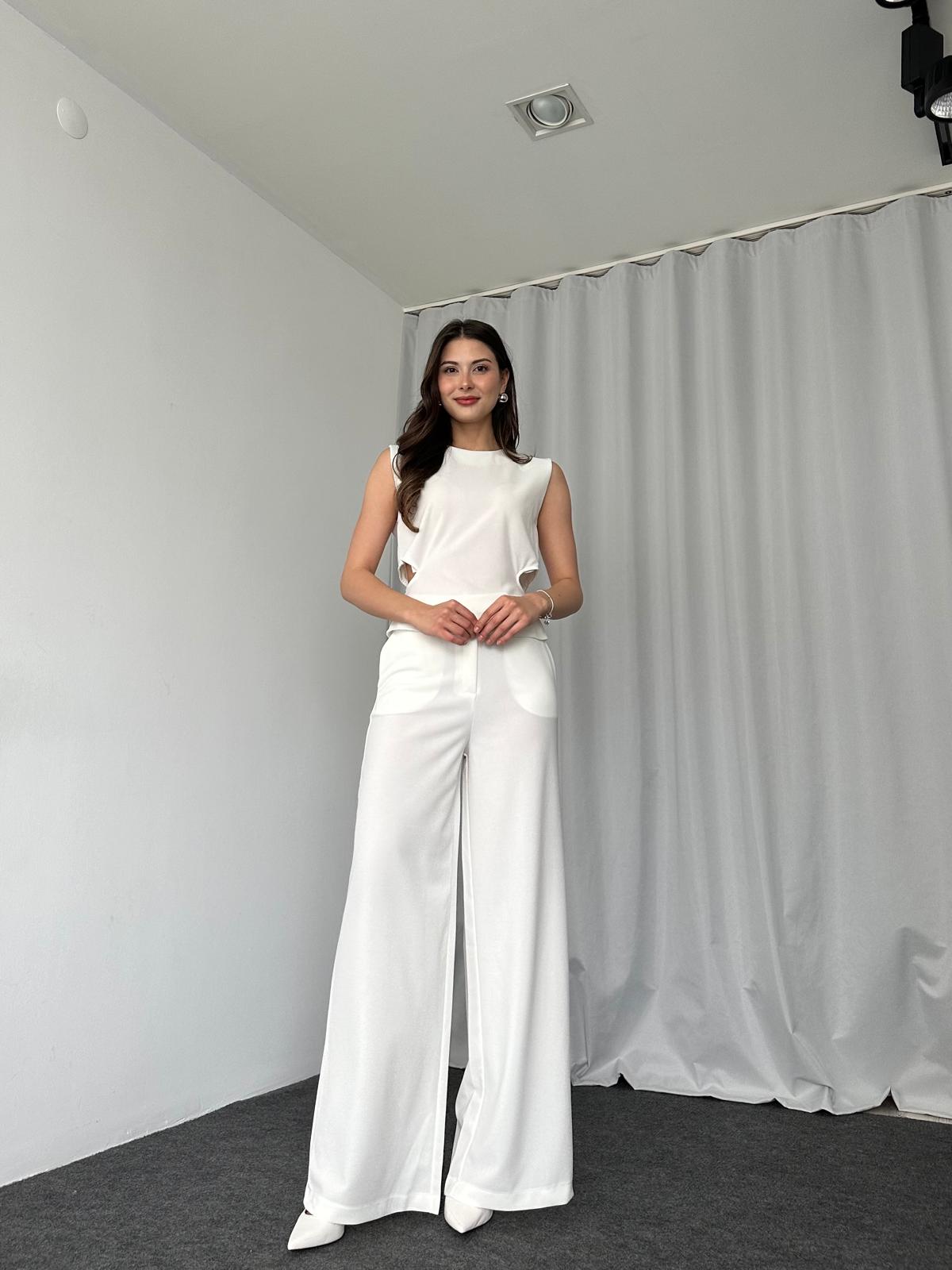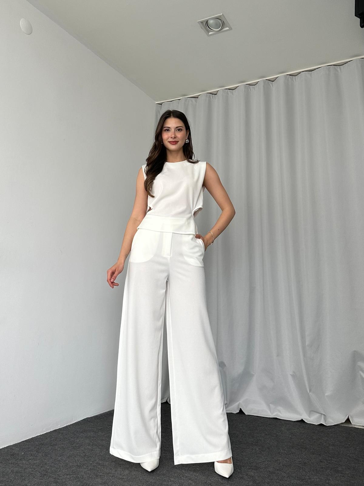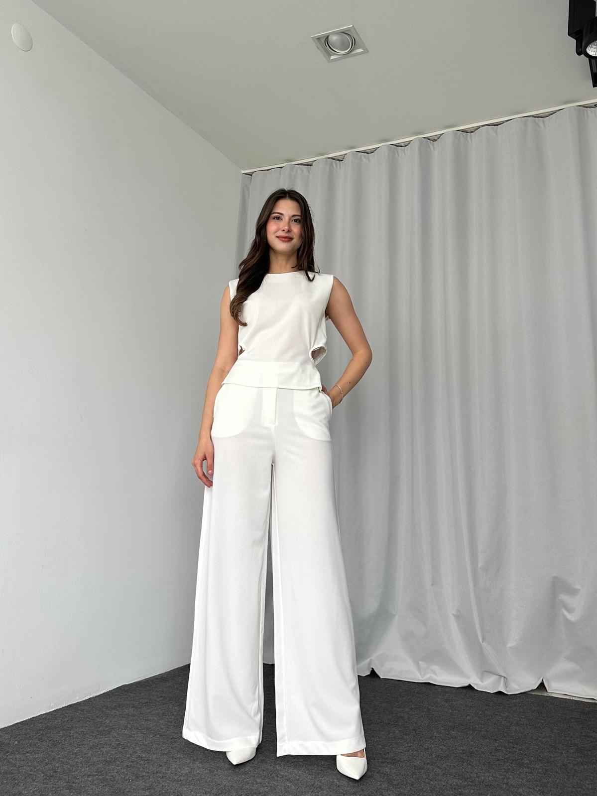 Bel Detaylı Bluz-Plazzo Takımı (Beyaz)