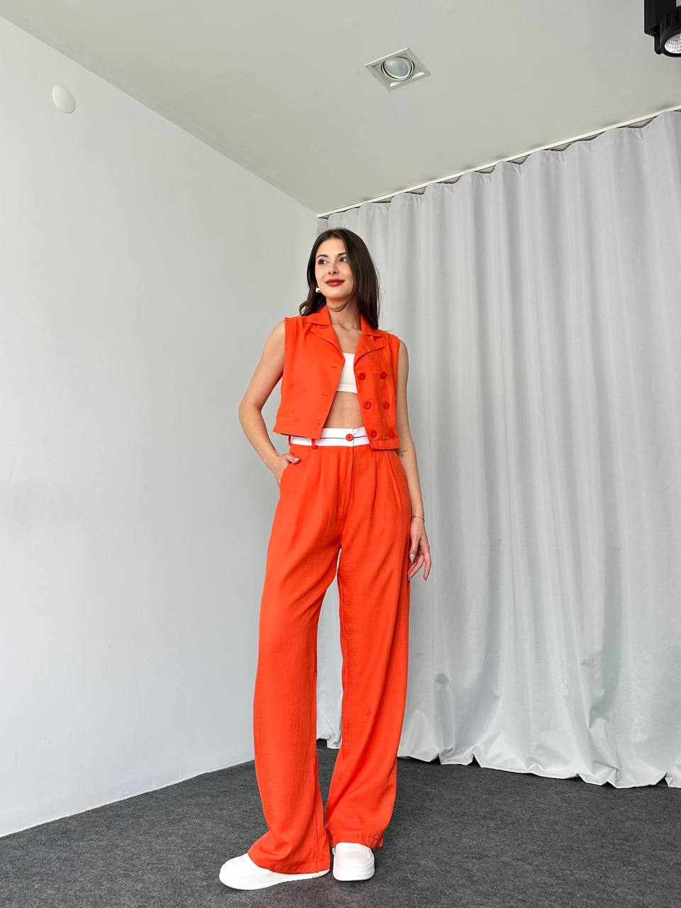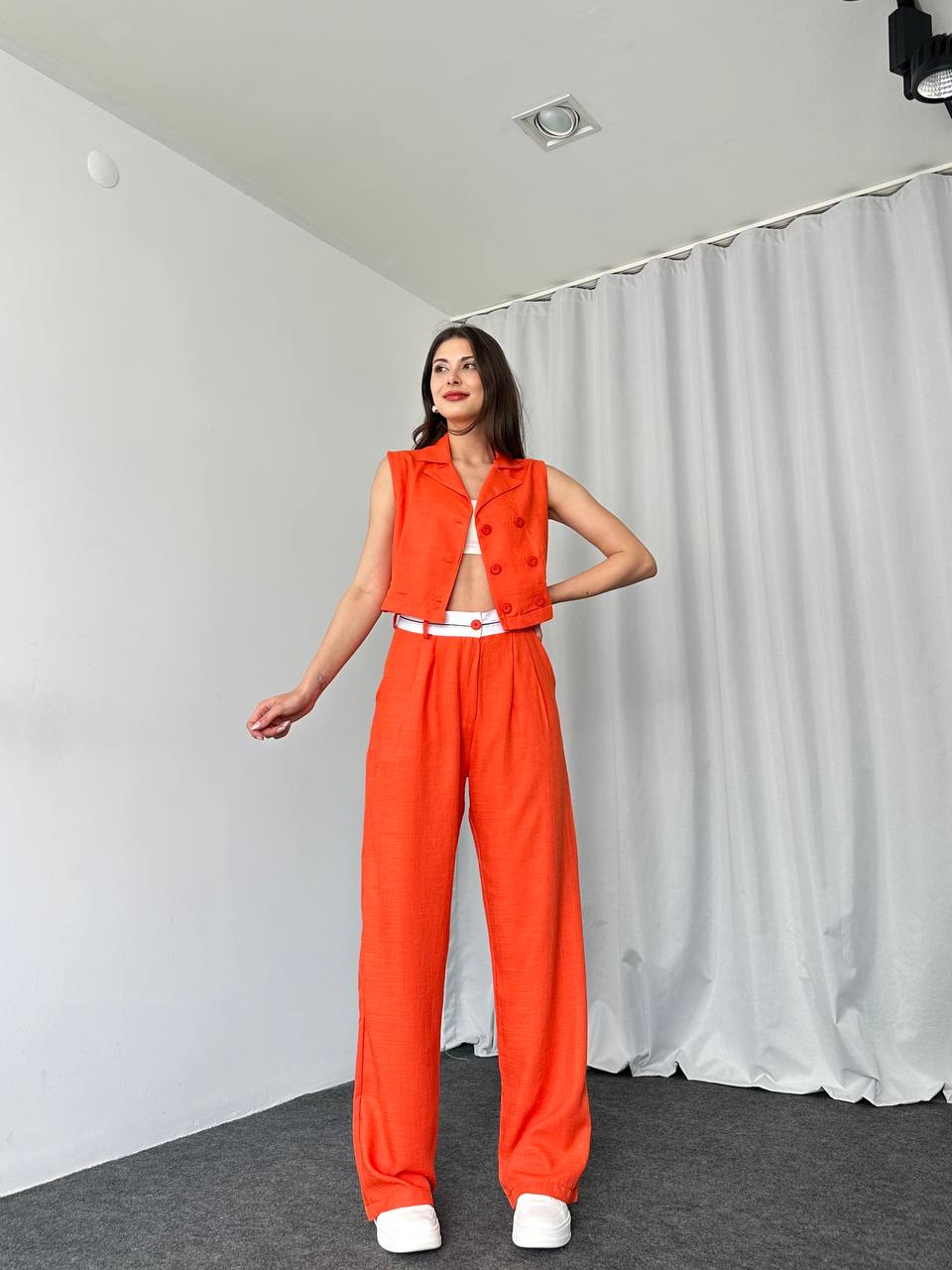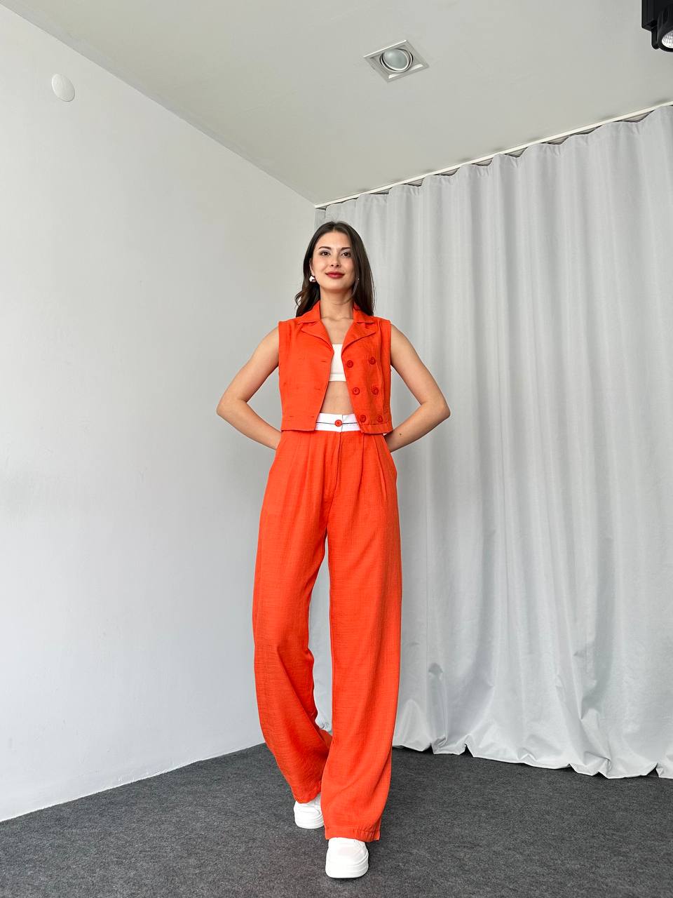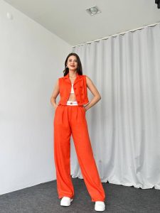 Bel Detaylı Plazzo-Yelek Takım (Orange)