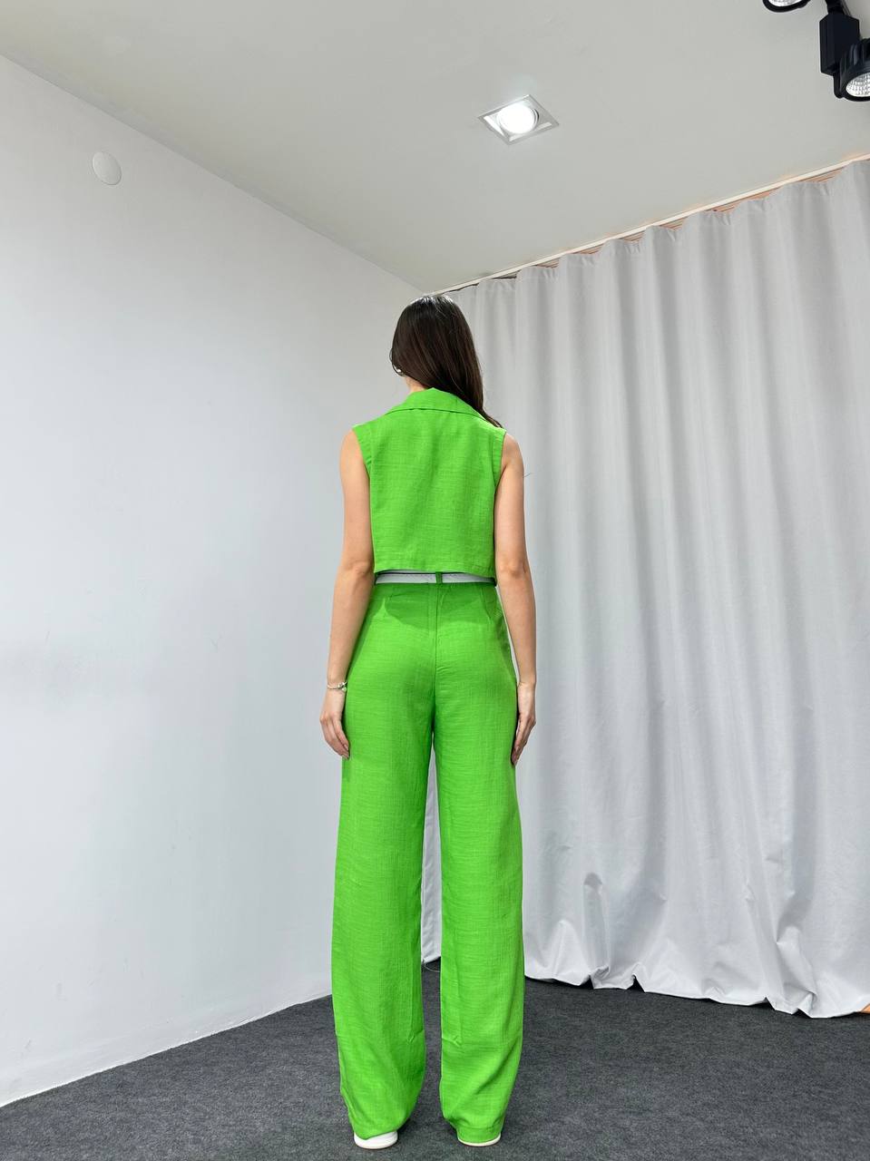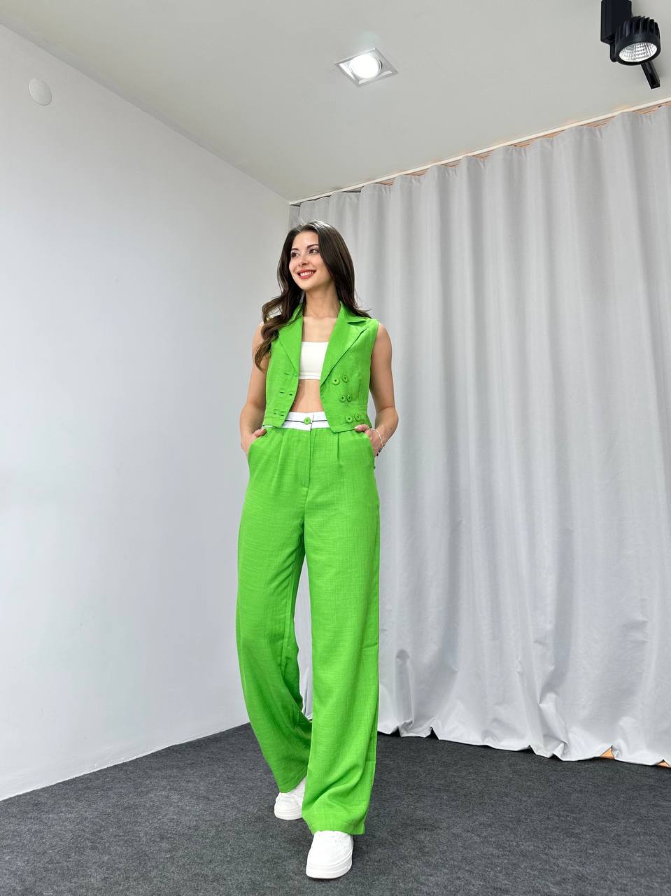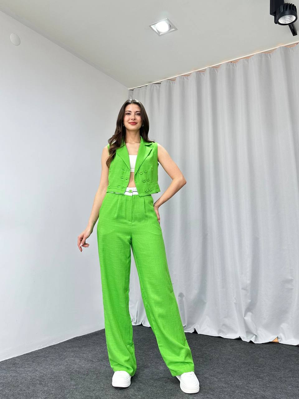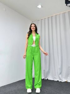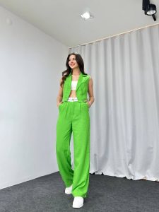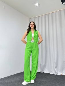 Bel Detaylı Plazzo-Yelek Takım (Yeşil)