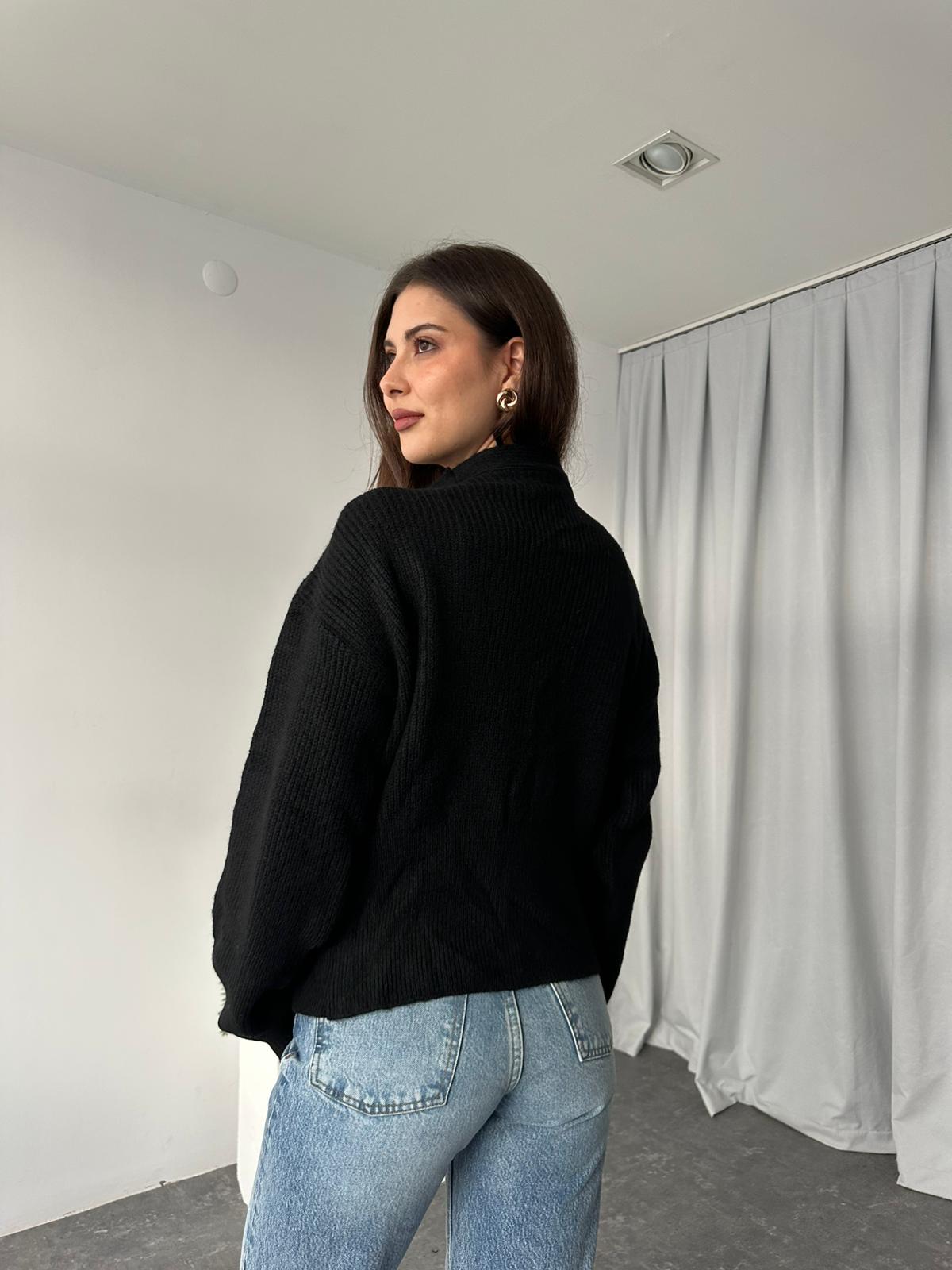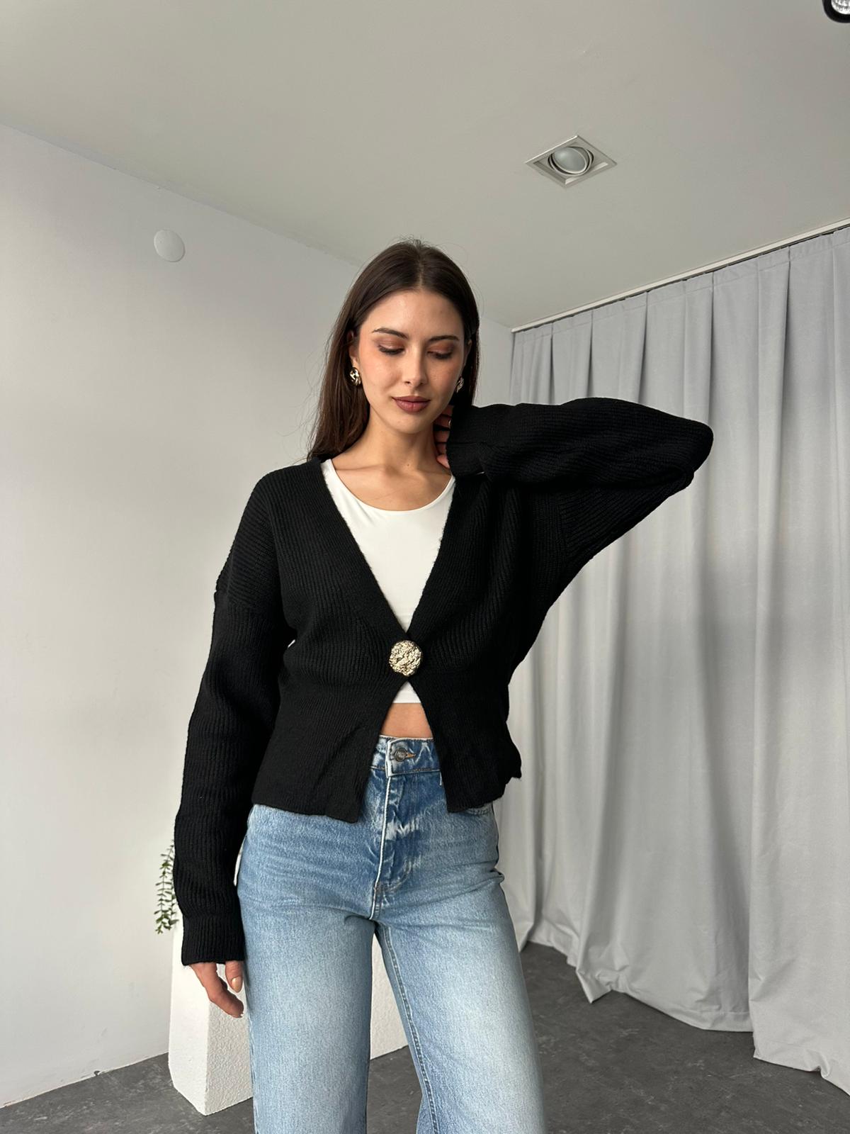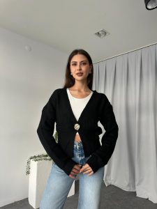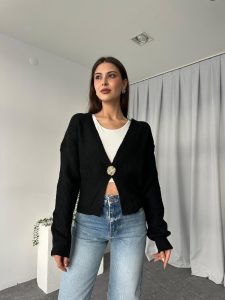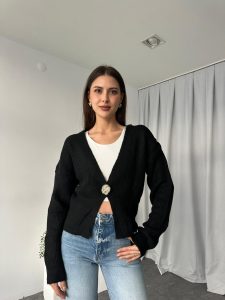 Düğme Detaylı Siyah Hırka