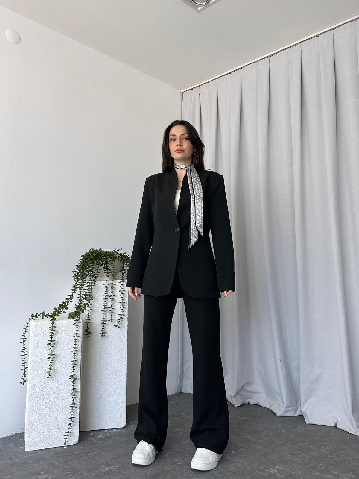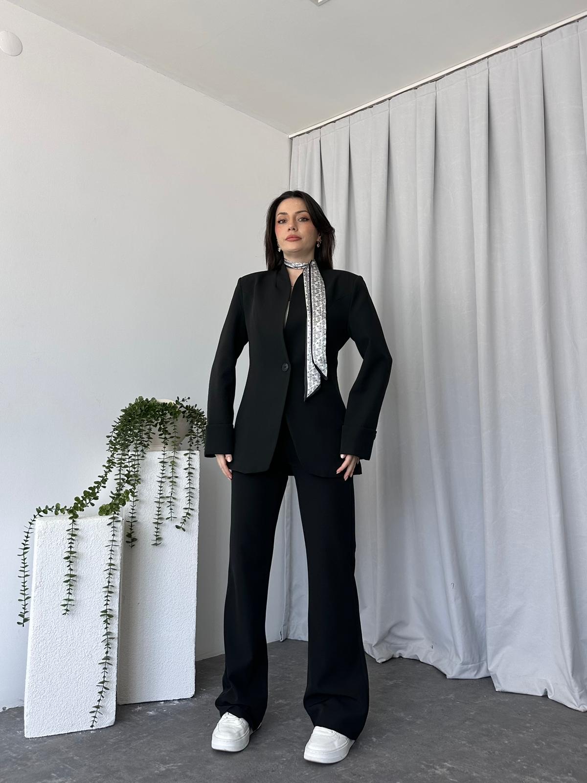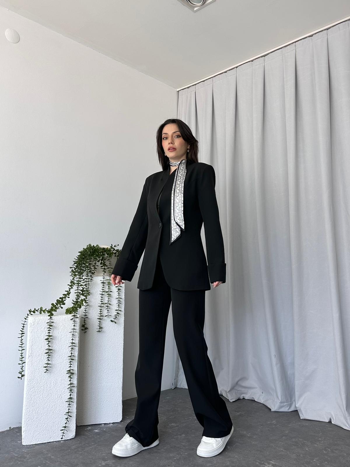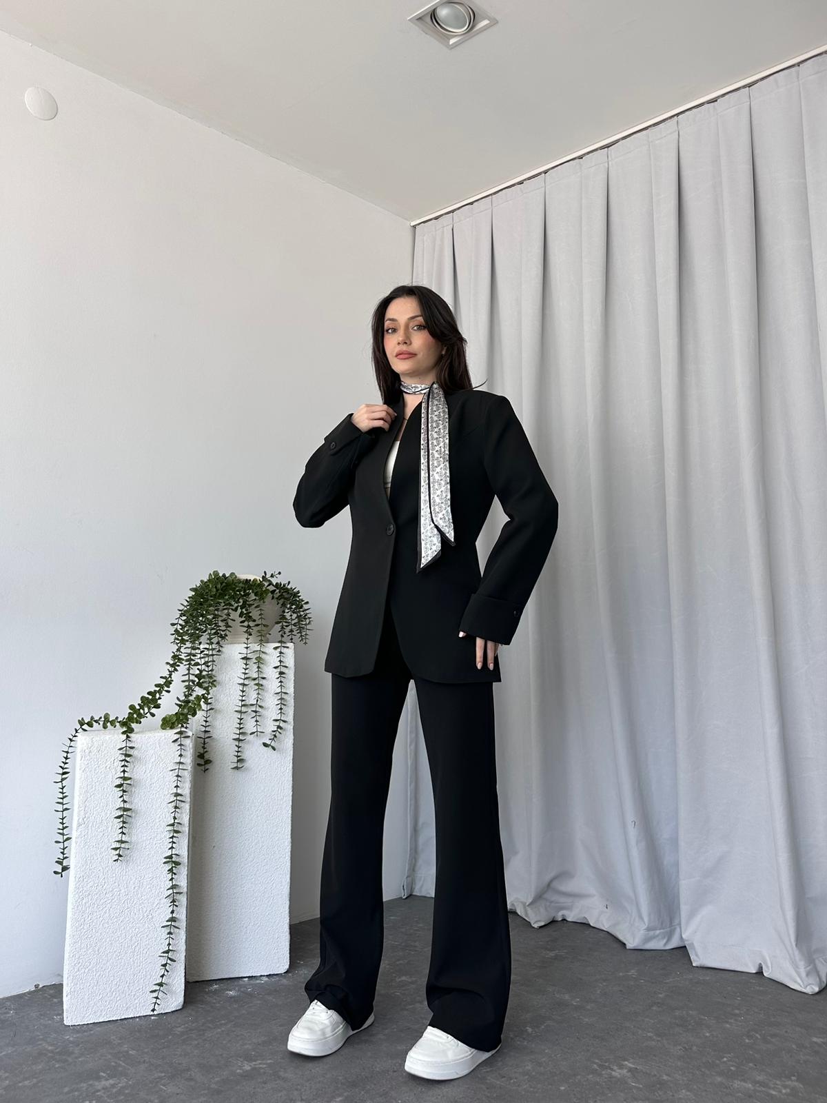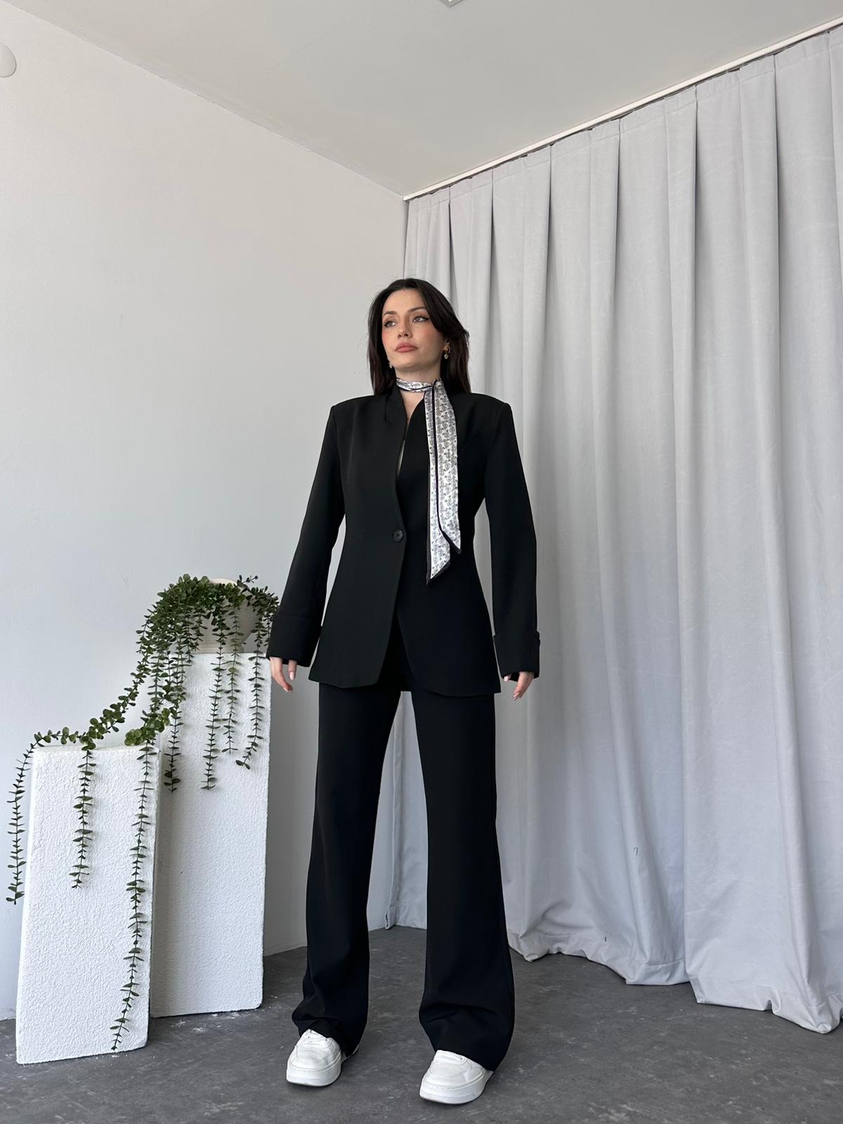 Hakim Yaka Siyah Ceket Pantolon Takım