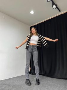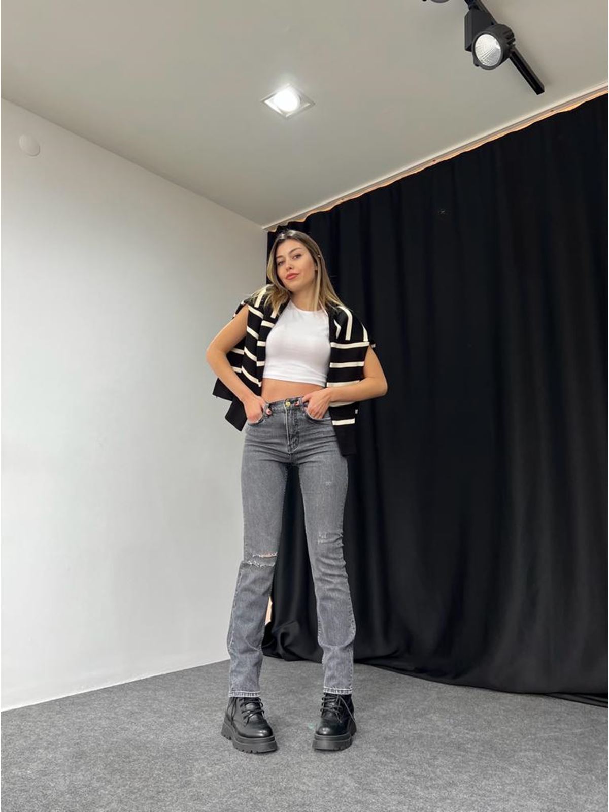 Kadın Antrasit Orj Marka Distressed Straight Leg Jean