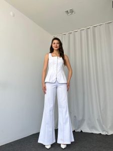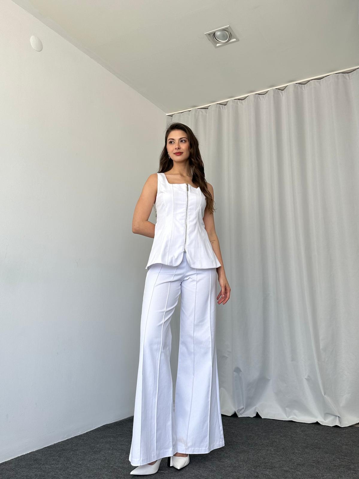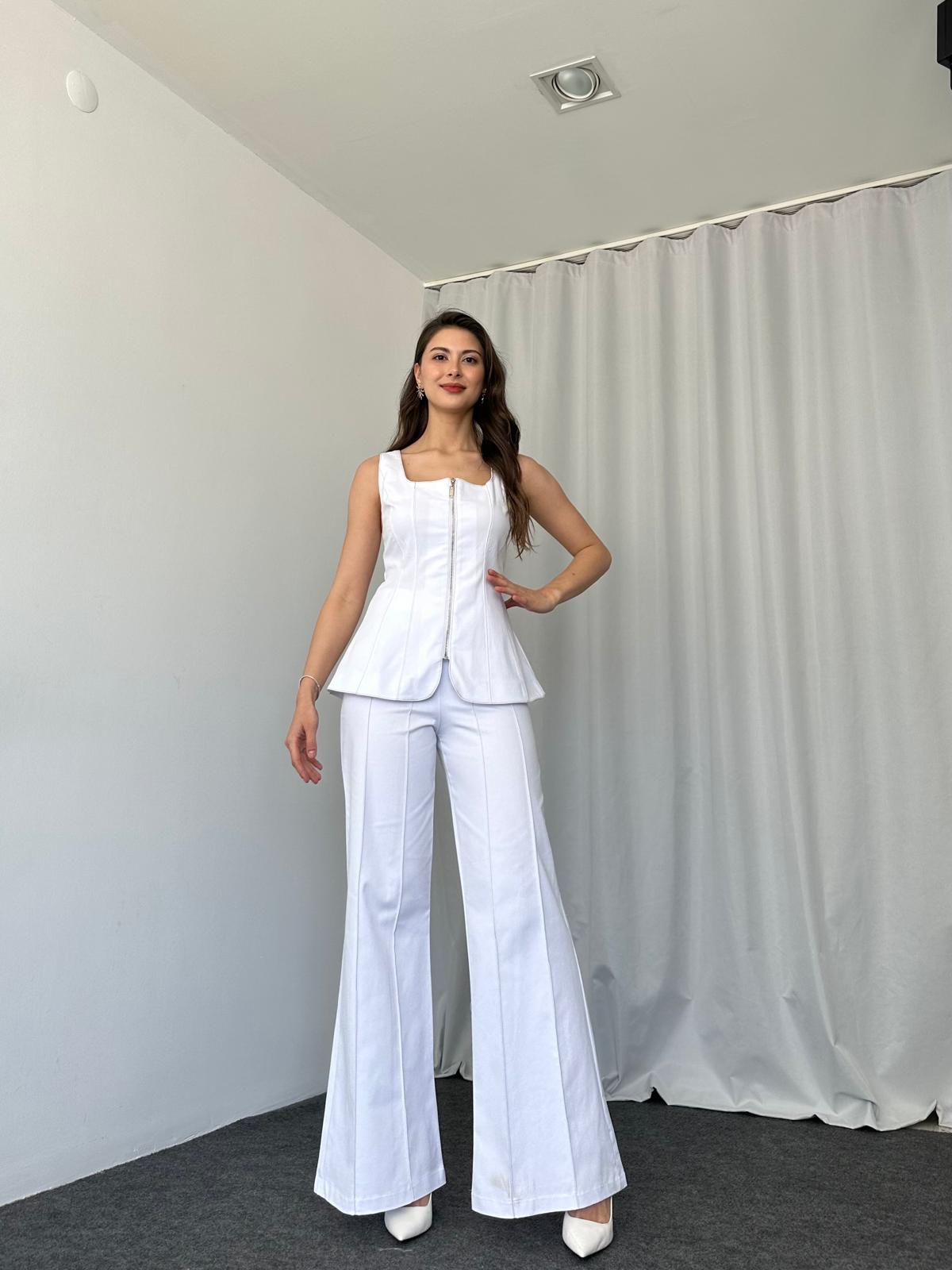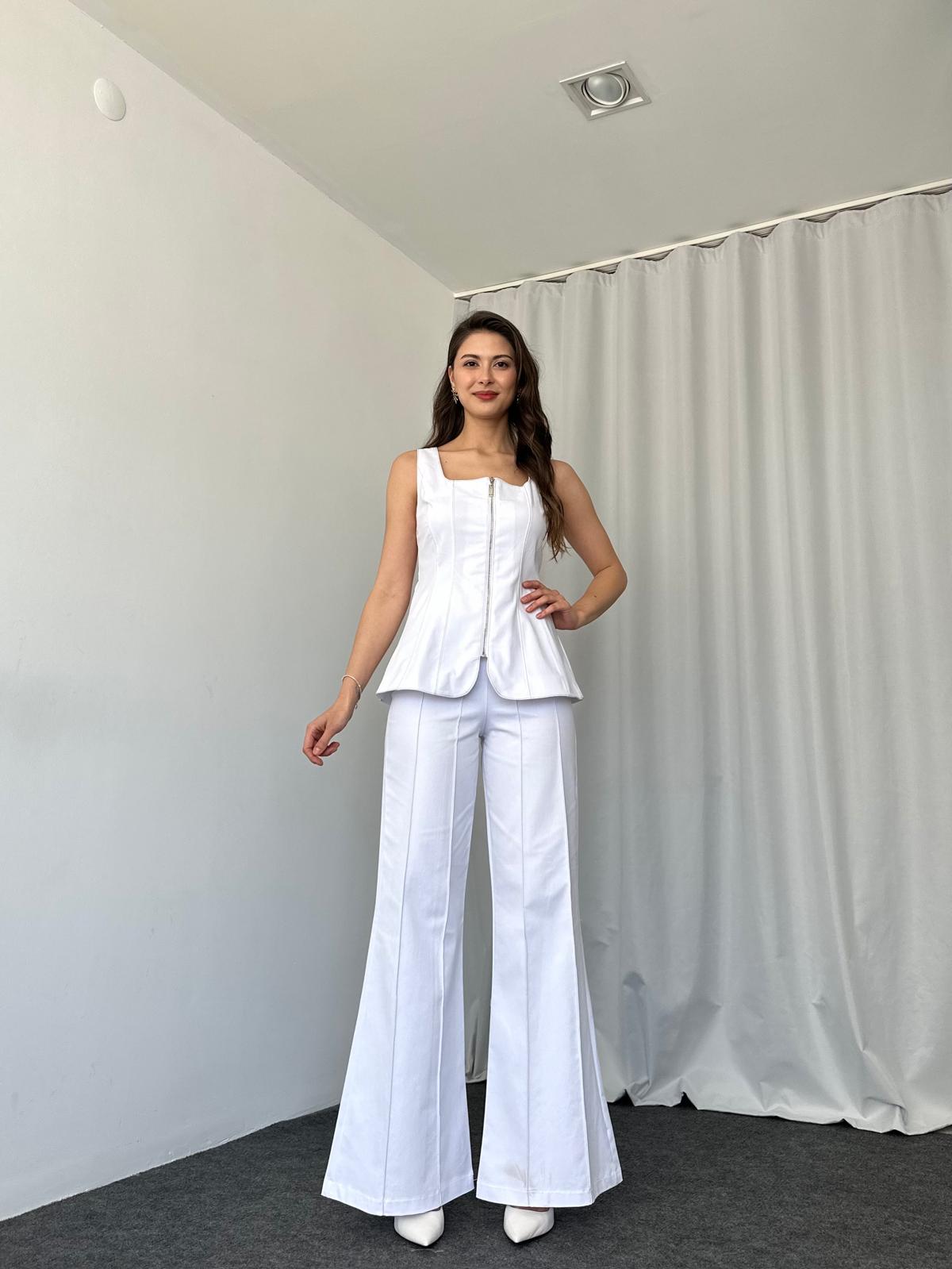 Kadın Beyaz Abbey Yelek-Plazzo Takım