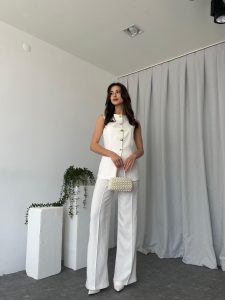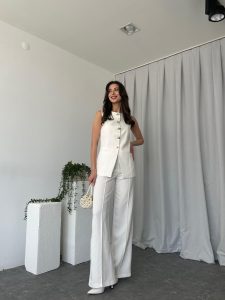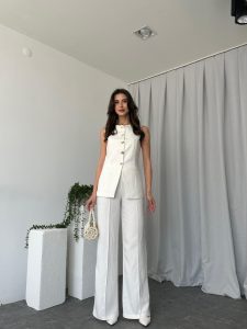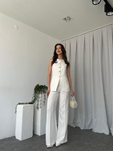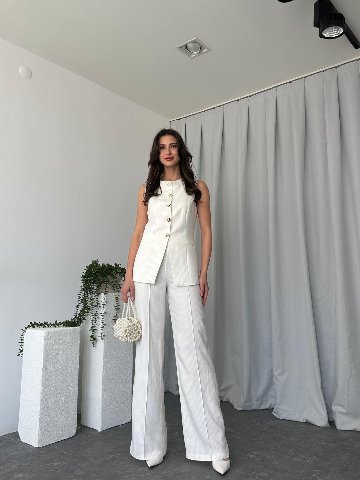 Kadın Beyaz Agnes Yelekli Takım