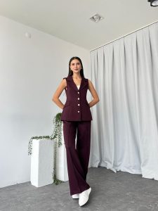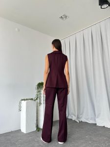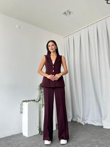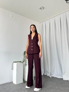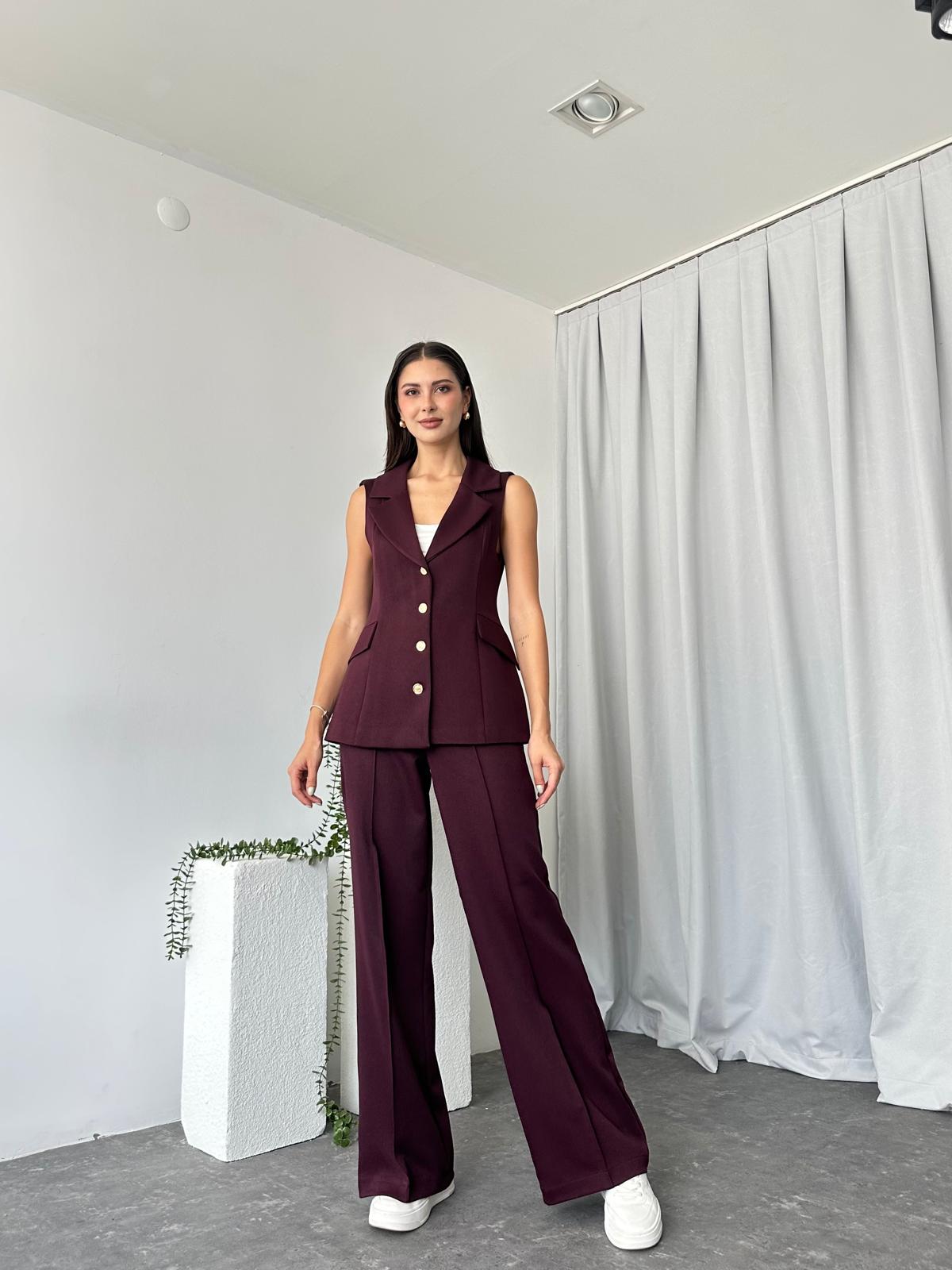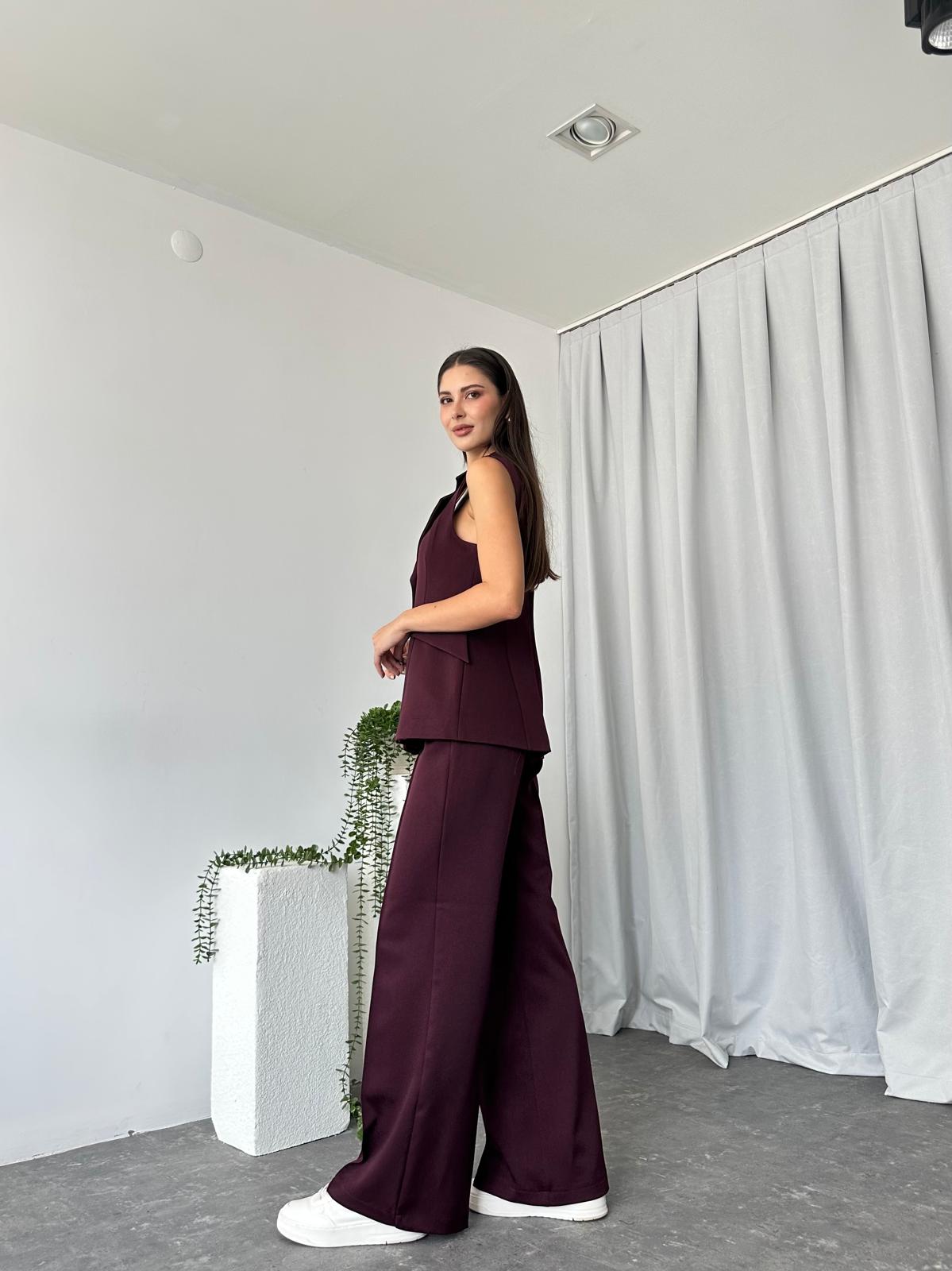 Kadın Bordo Elenie Yün Efekt Yelek-Takım
