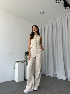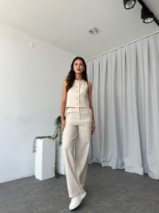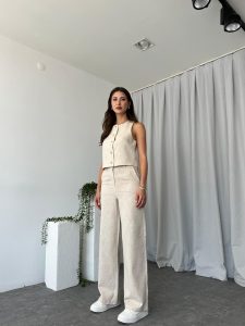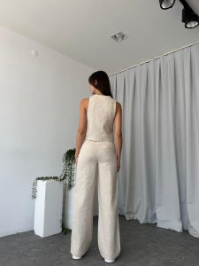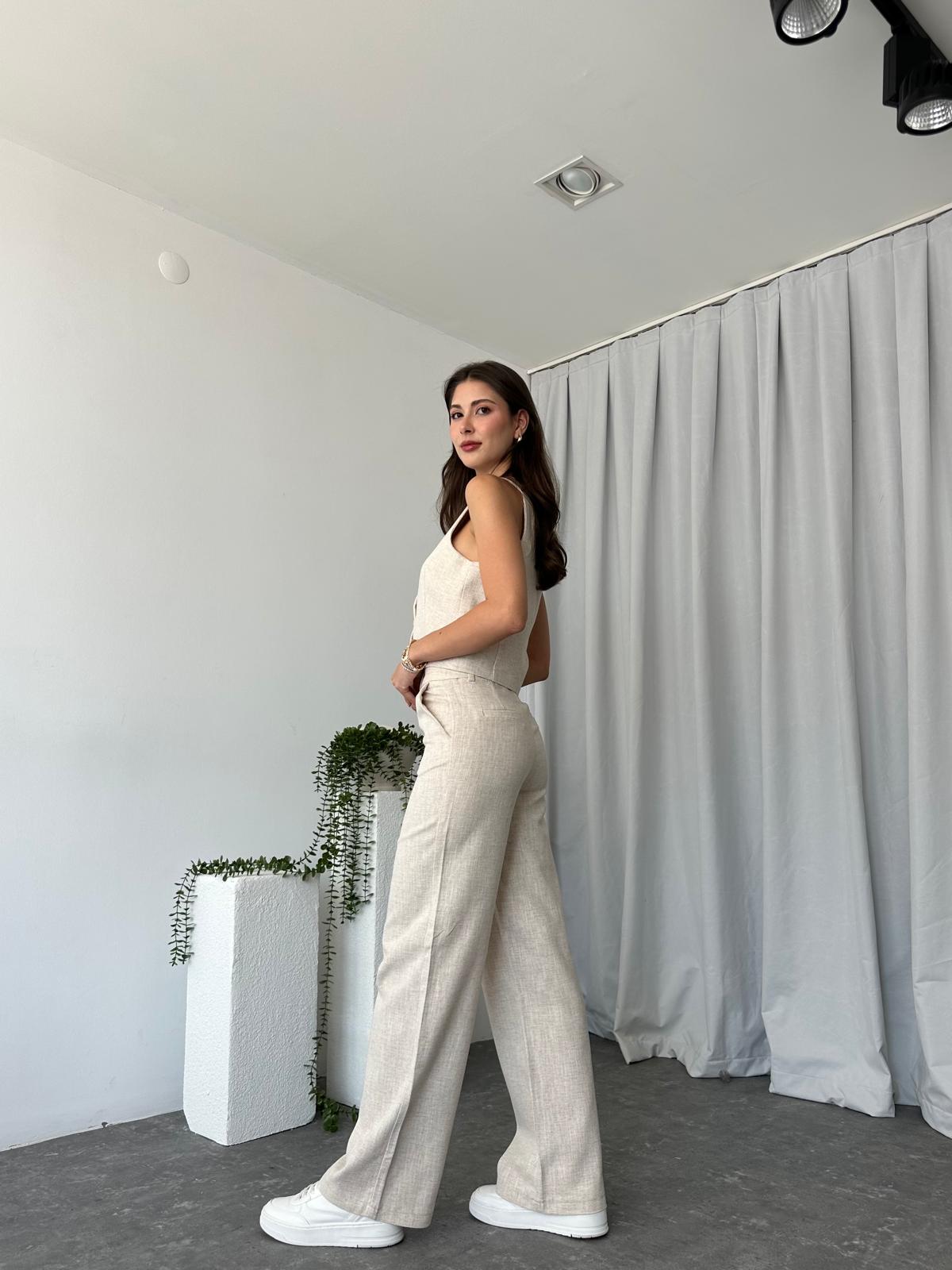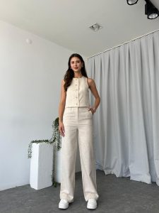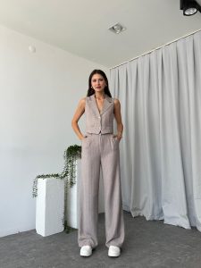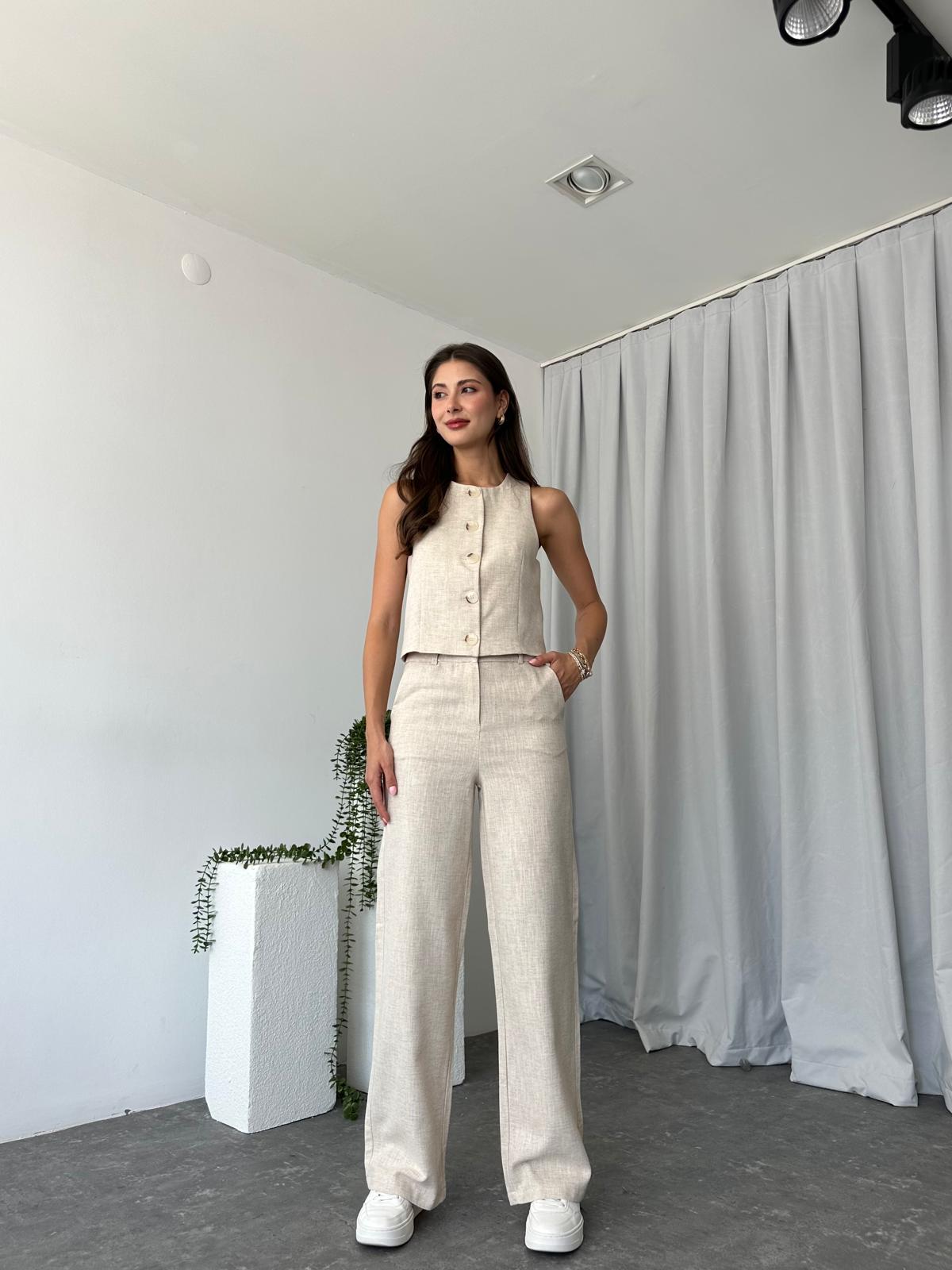 Kadın Dixie Keten Taş Rengi Yelekli Takım