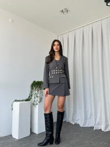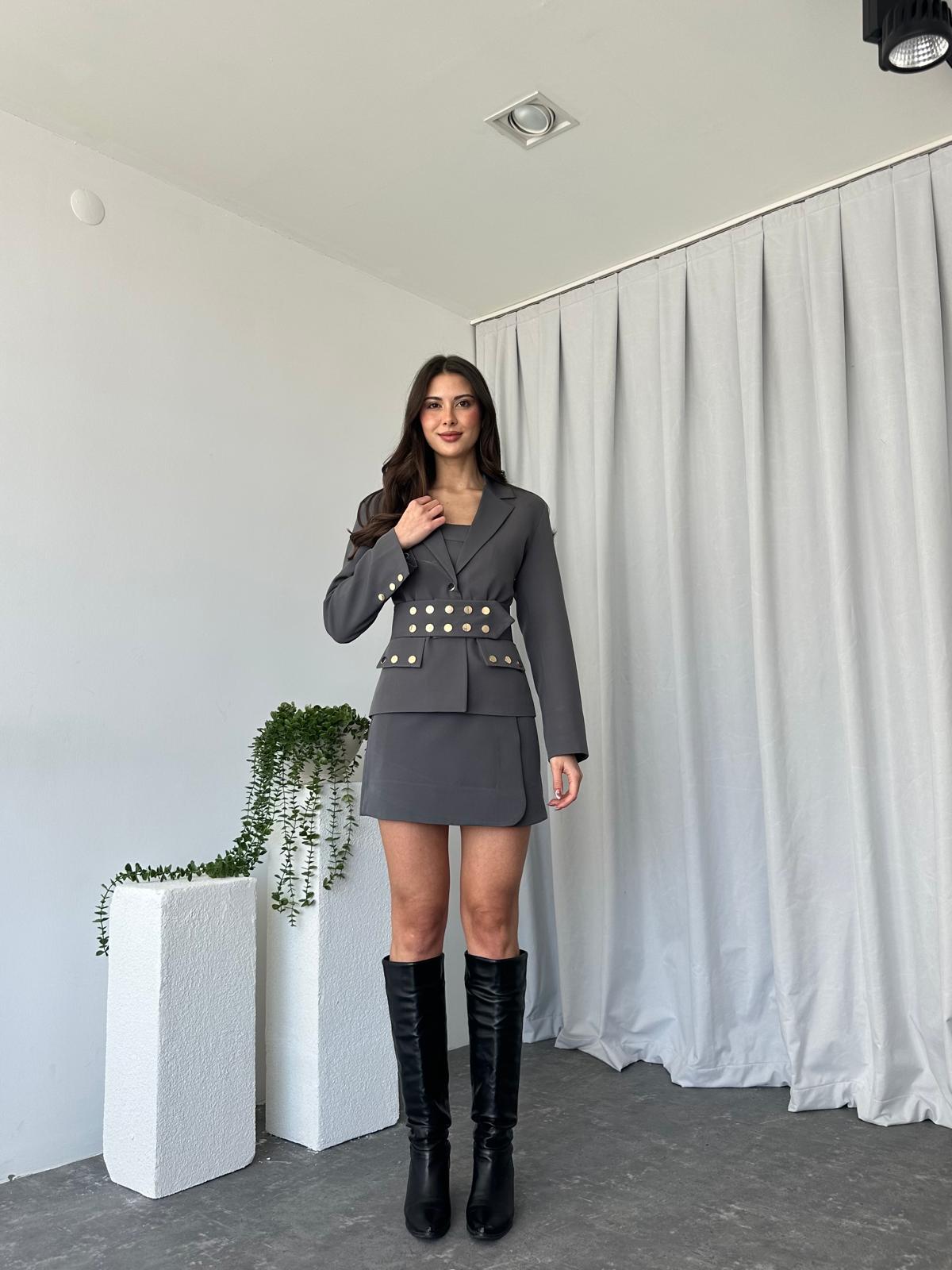 Kadın Füme Chester Etek-Ceket-Crop Takım