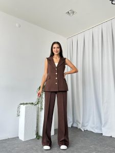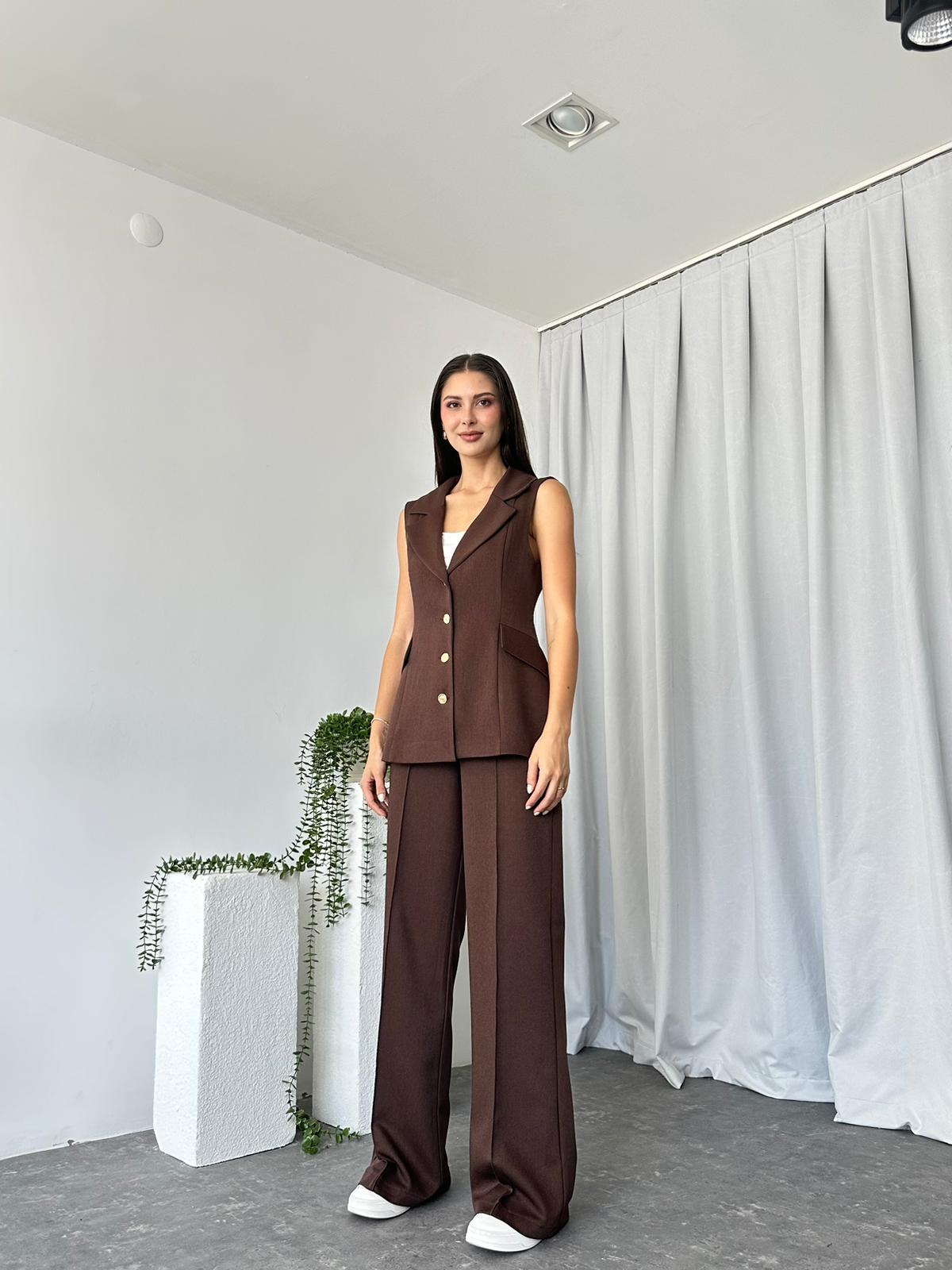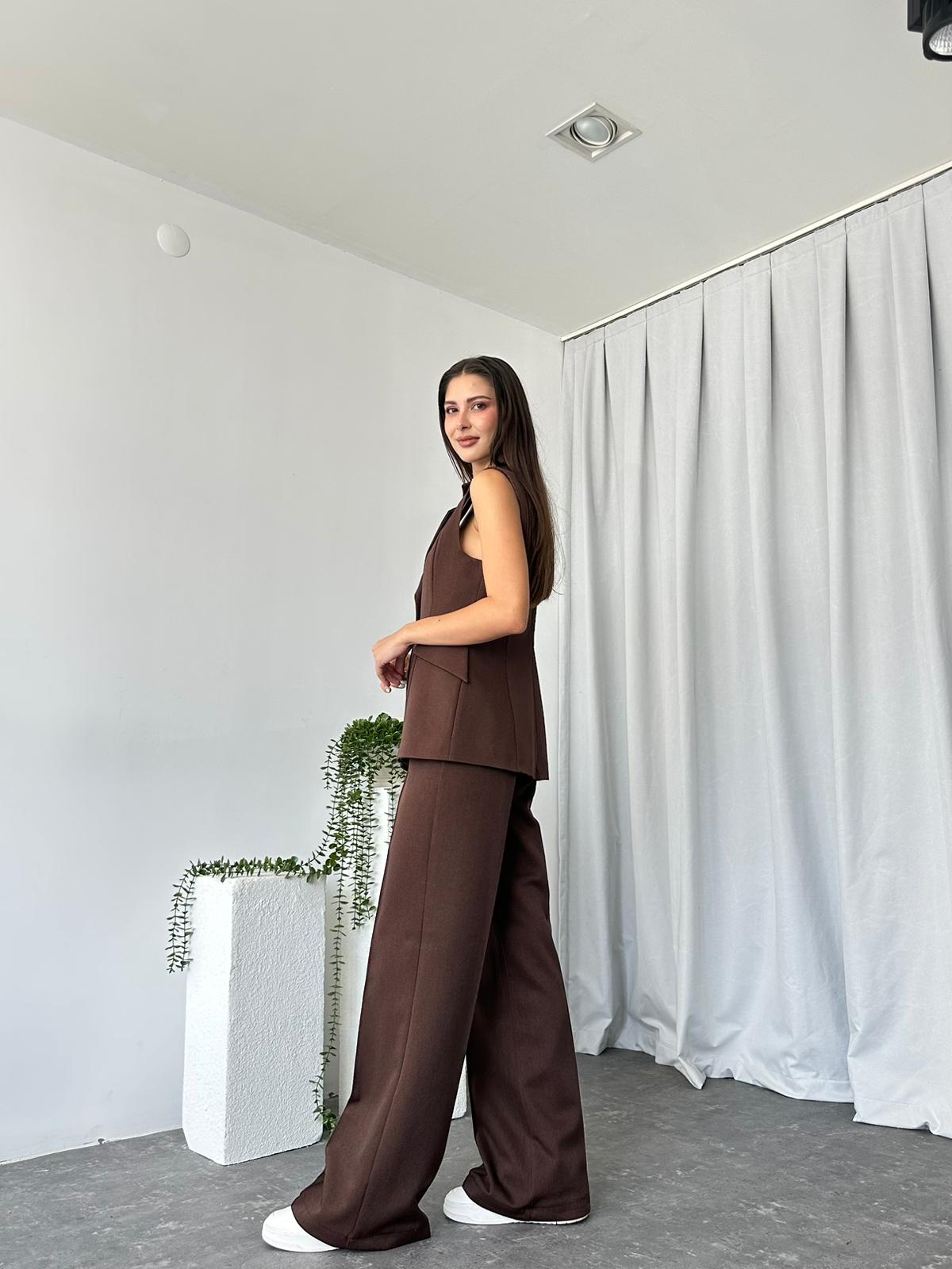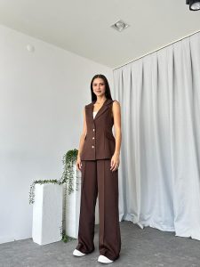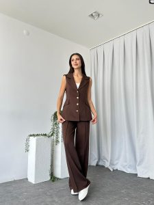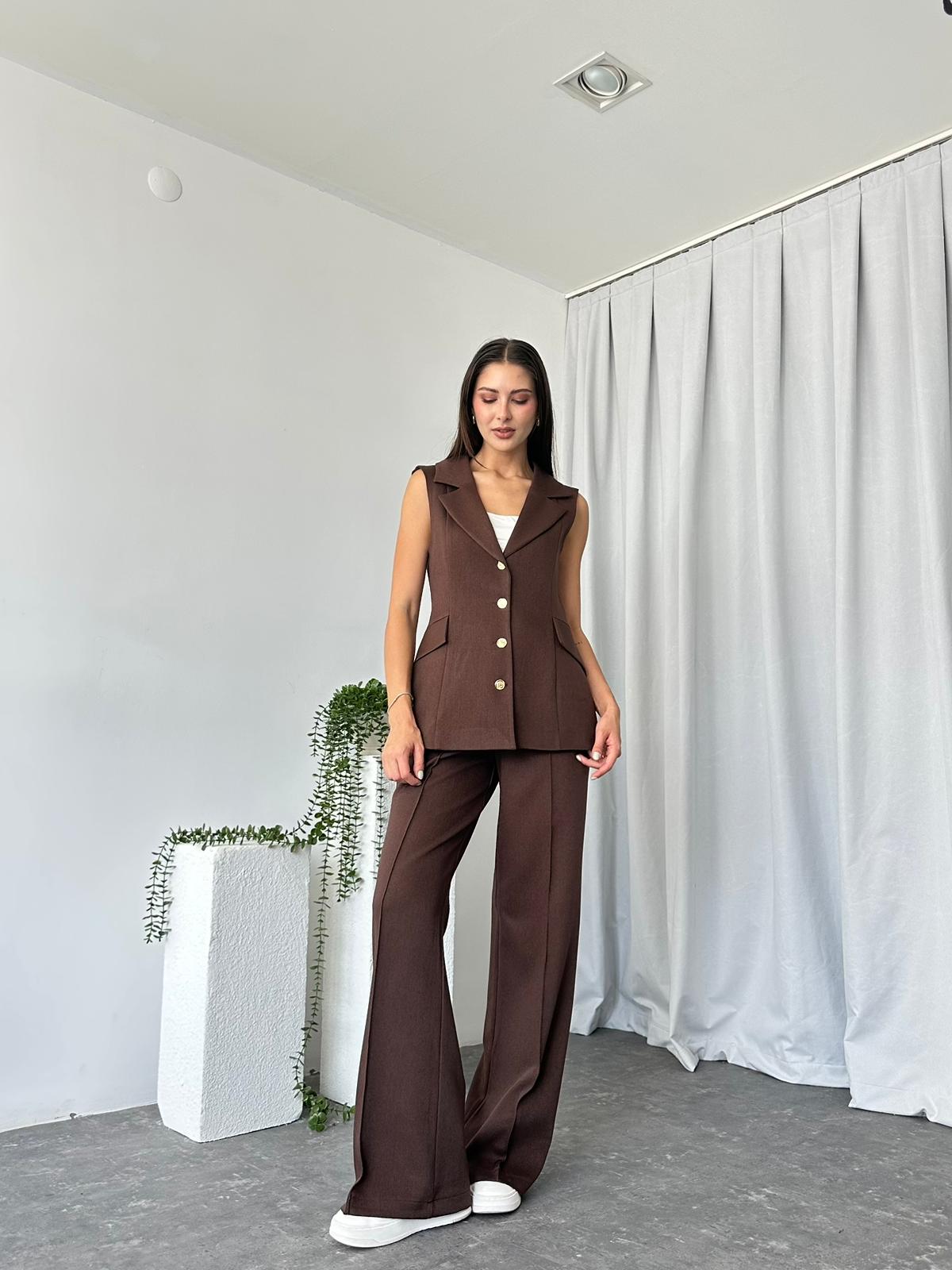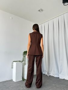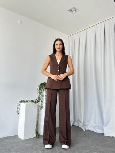 Kadın Kahverengi Elenie Yün Efekt Yelek-Takım