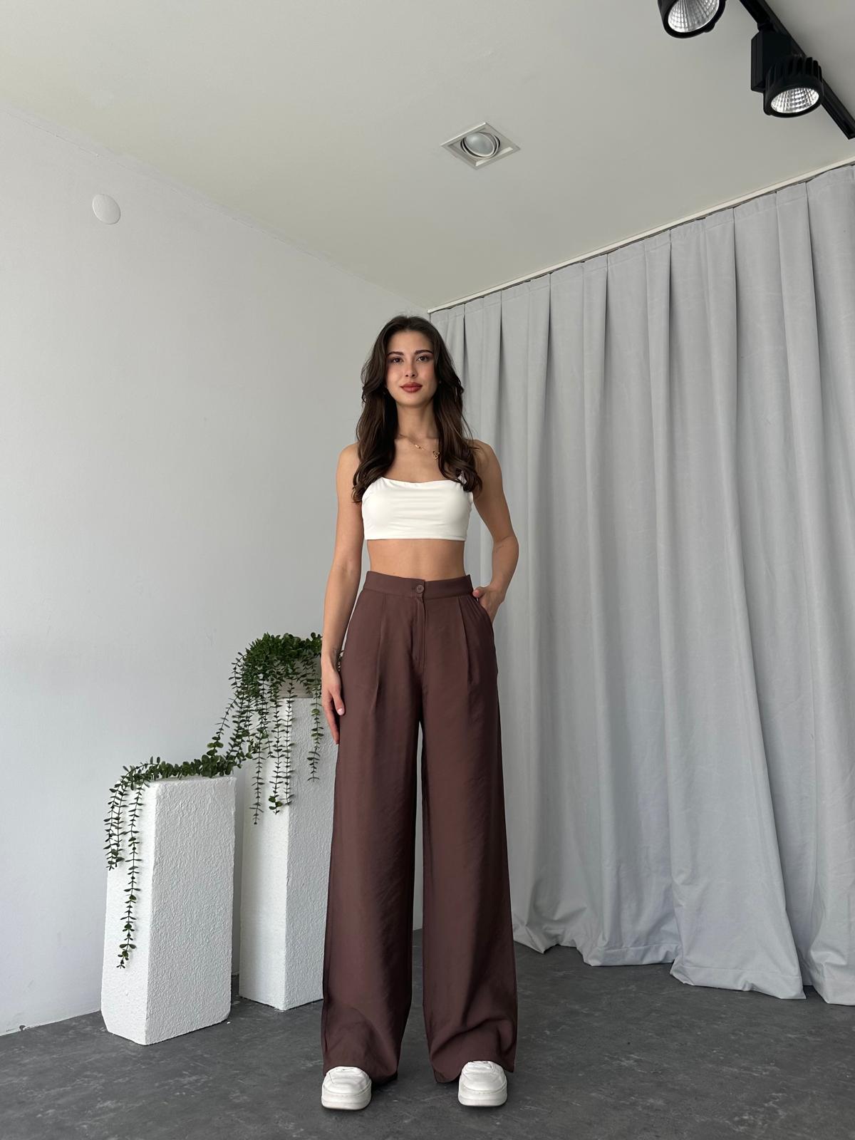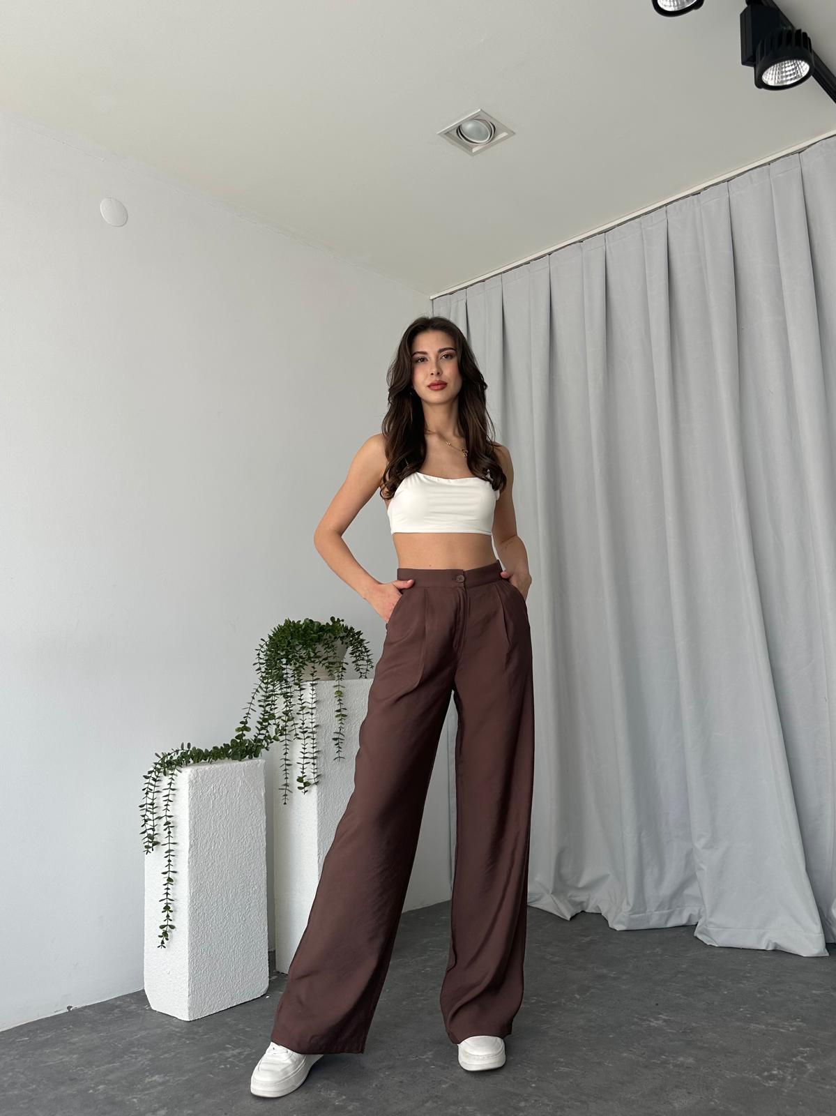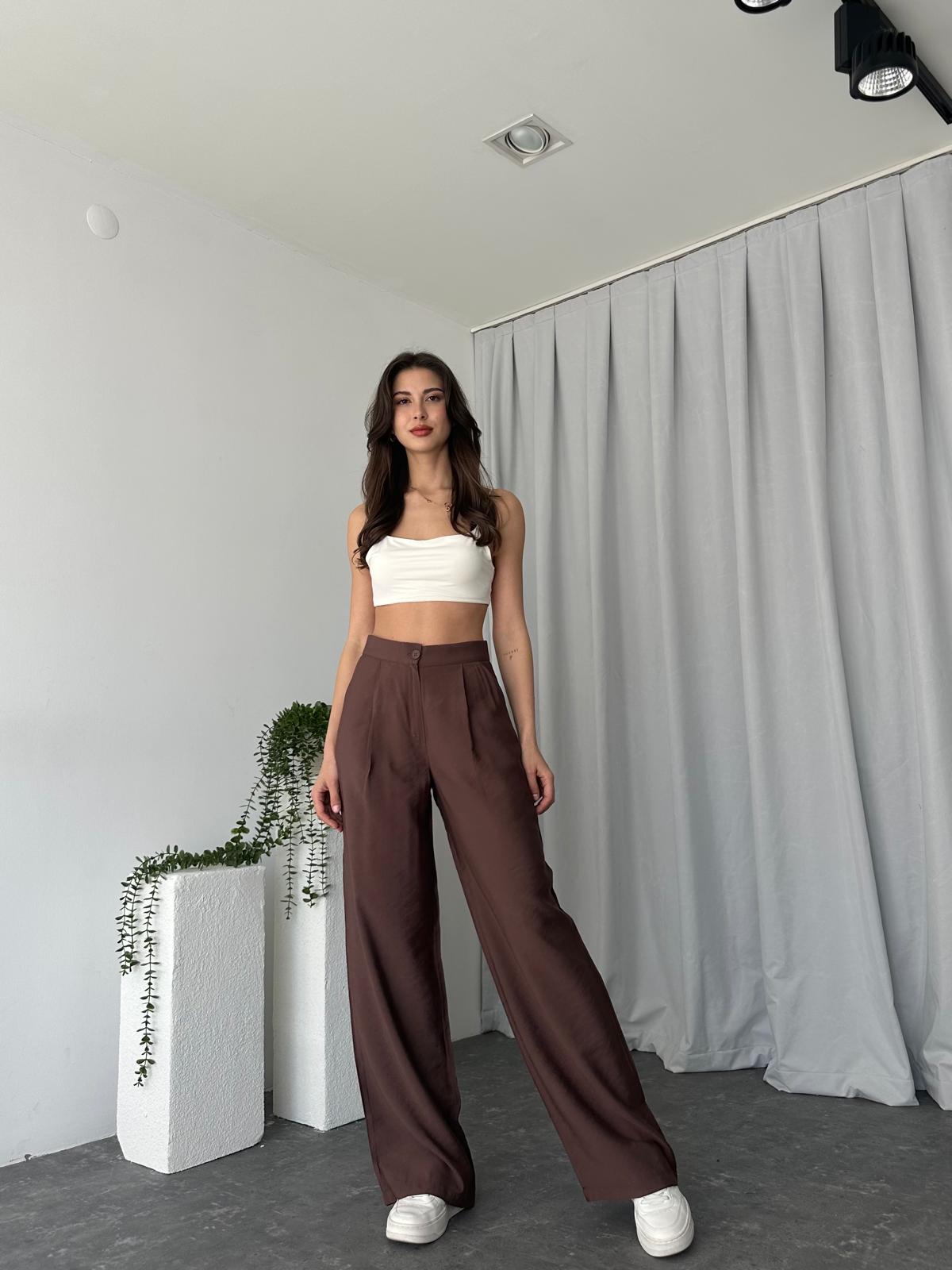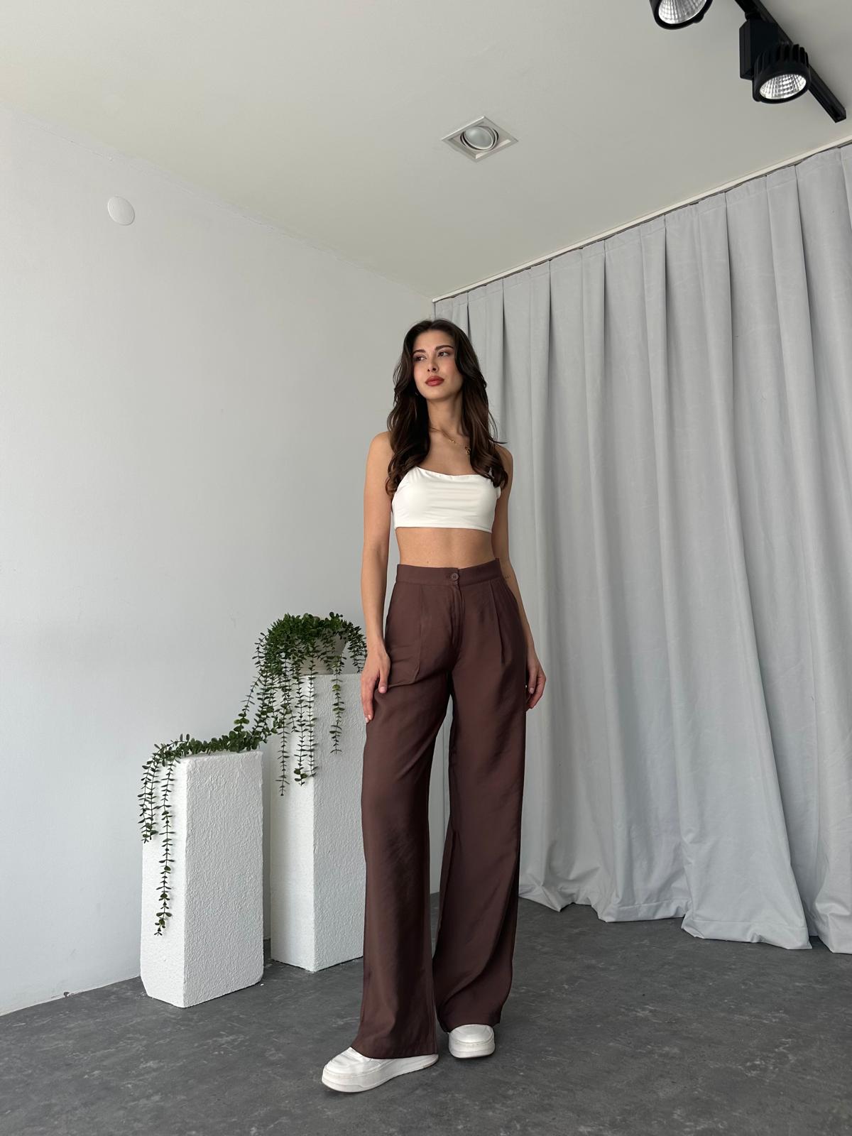 Kadın Kahverengi Tensel Kumaş Pantolon