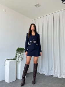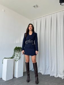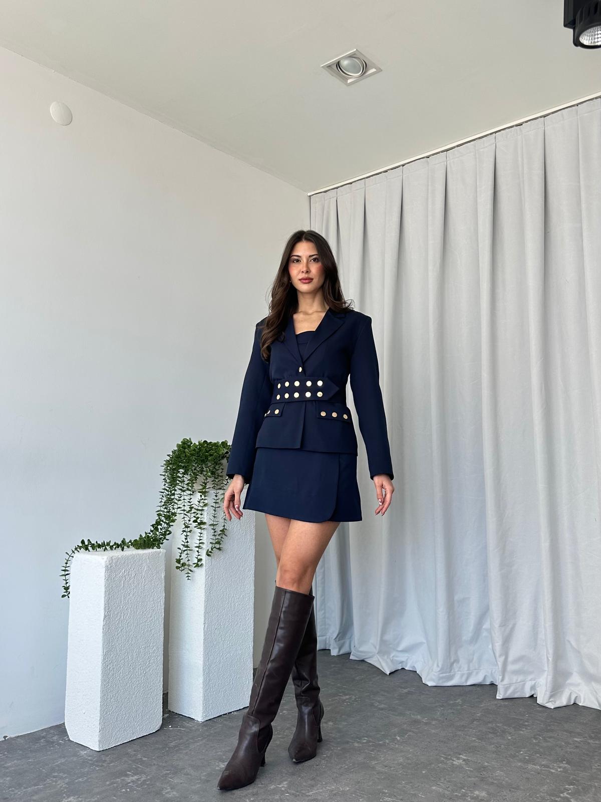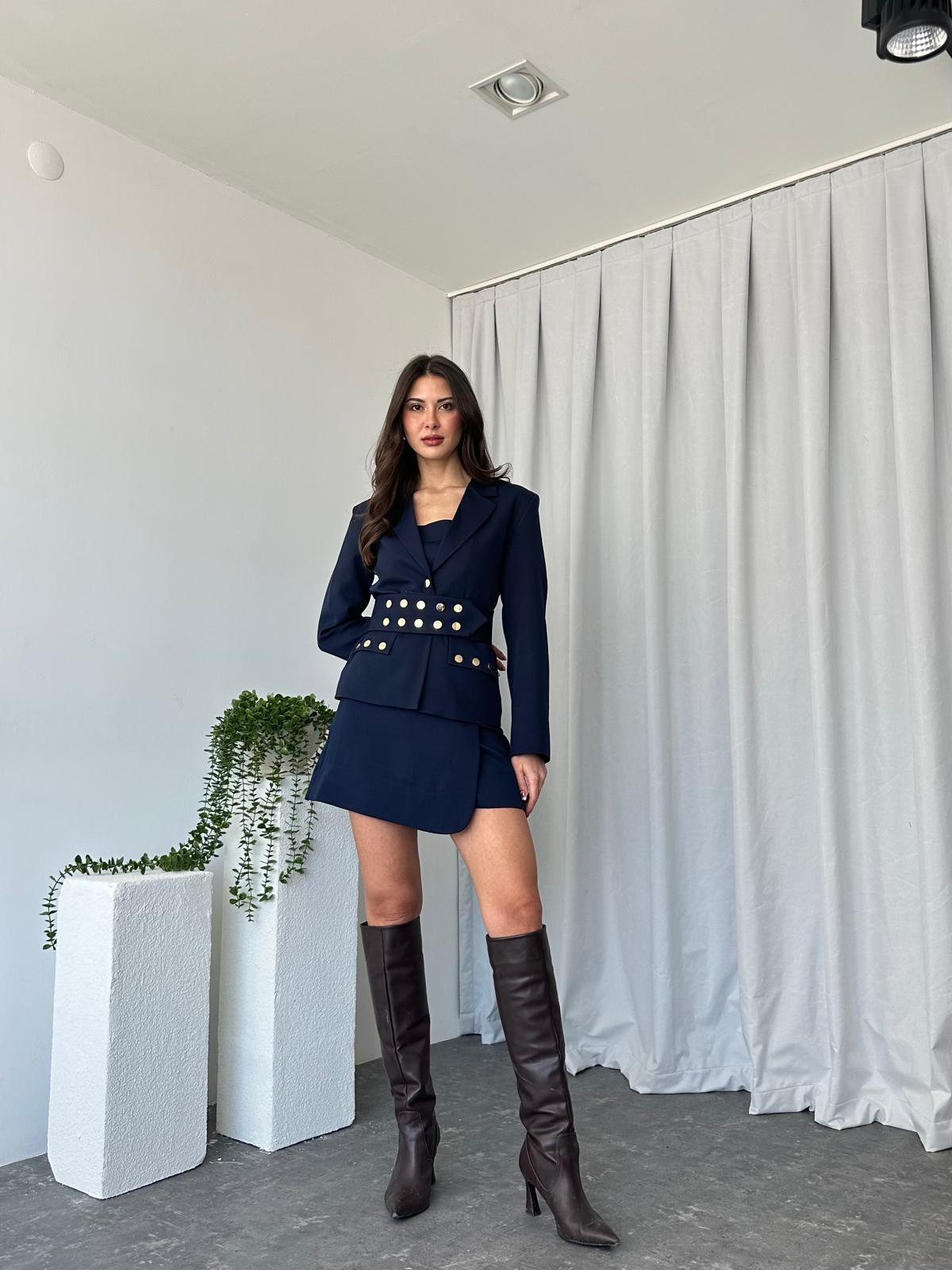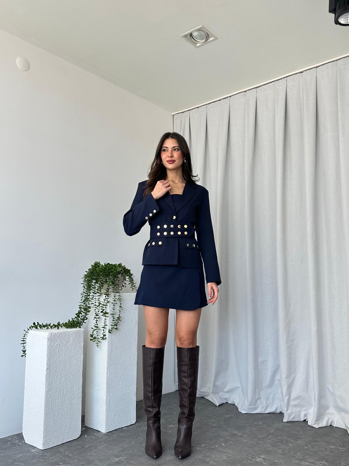 Kadın Lacivert Chester Etek-Ceket-Crop Takım
