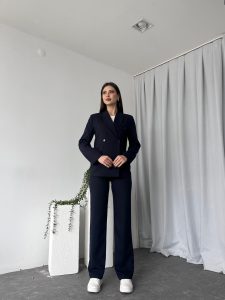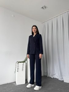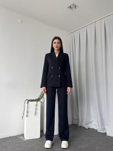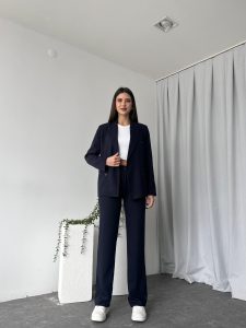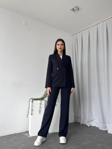 Kadın Lacivert Fit Ceket-Pantalon Takım