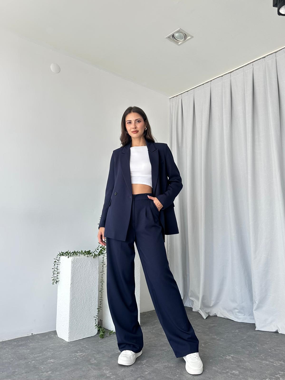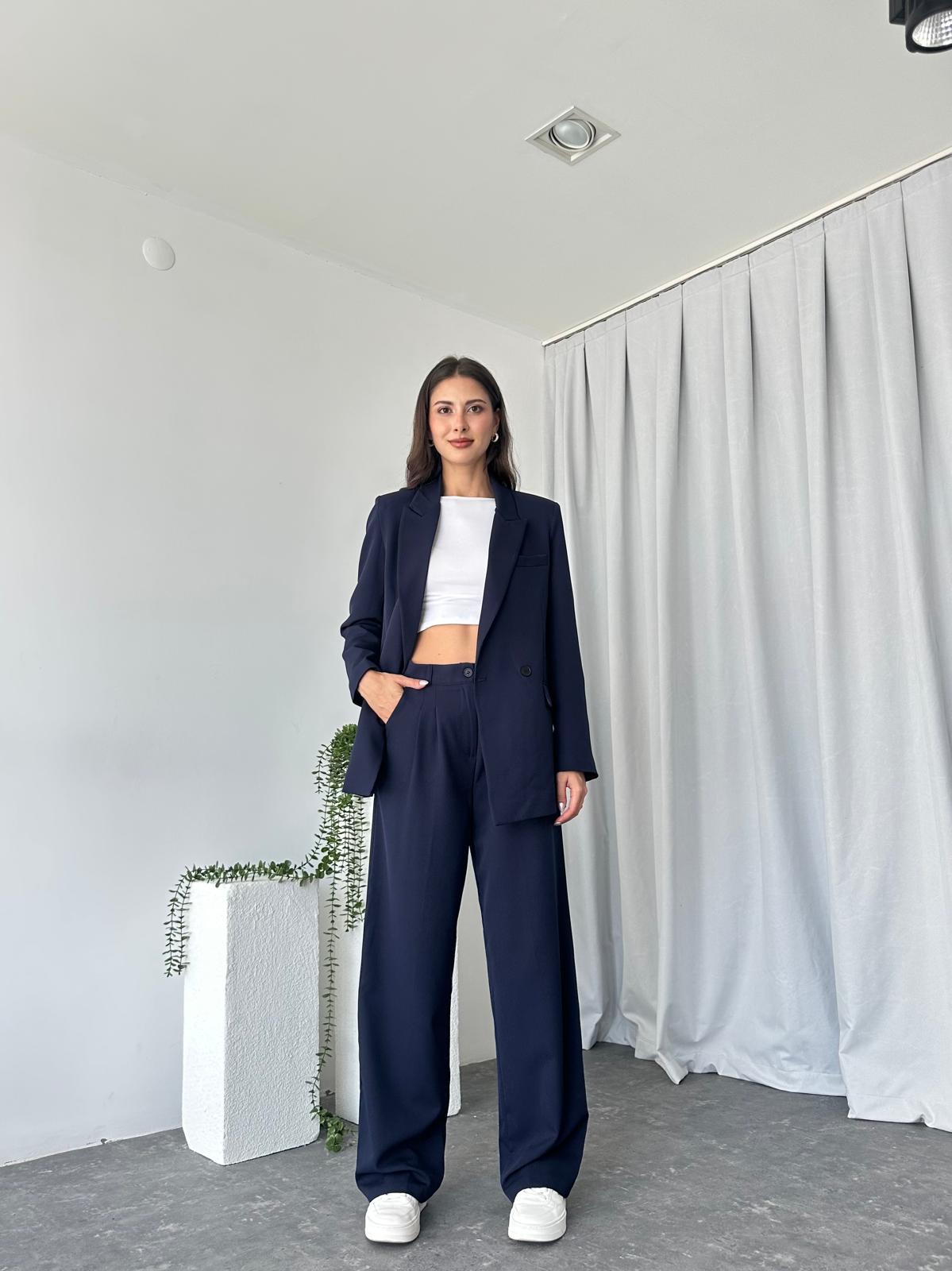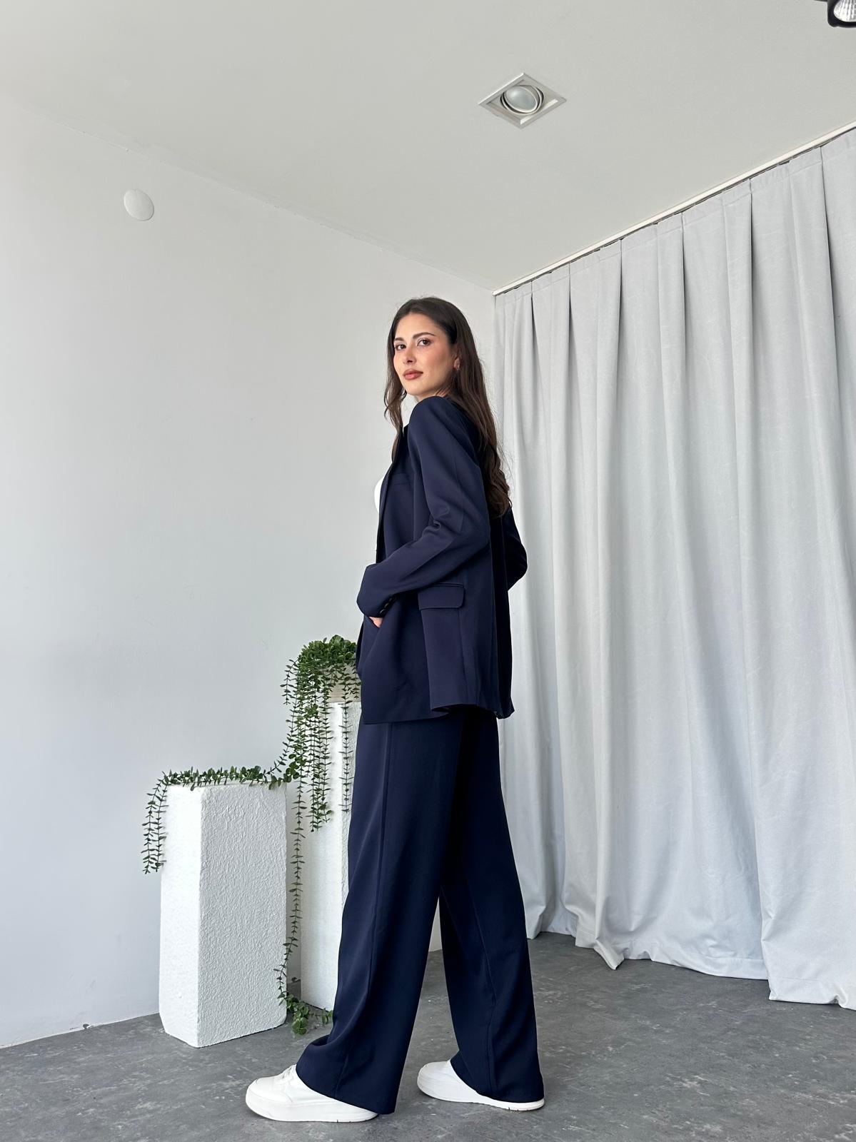 Kadın Lacivert Oversize Ceket Pantolon Takım