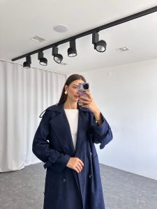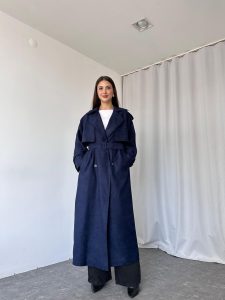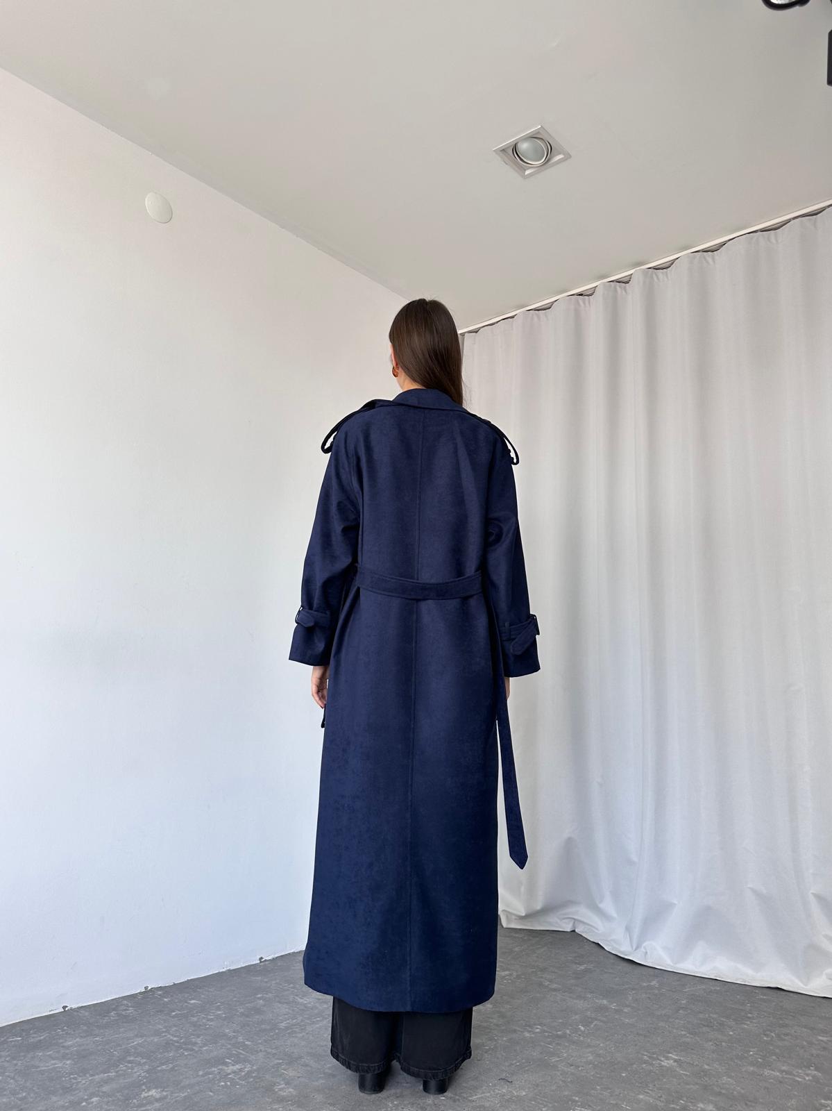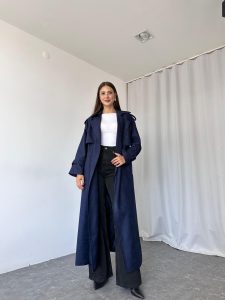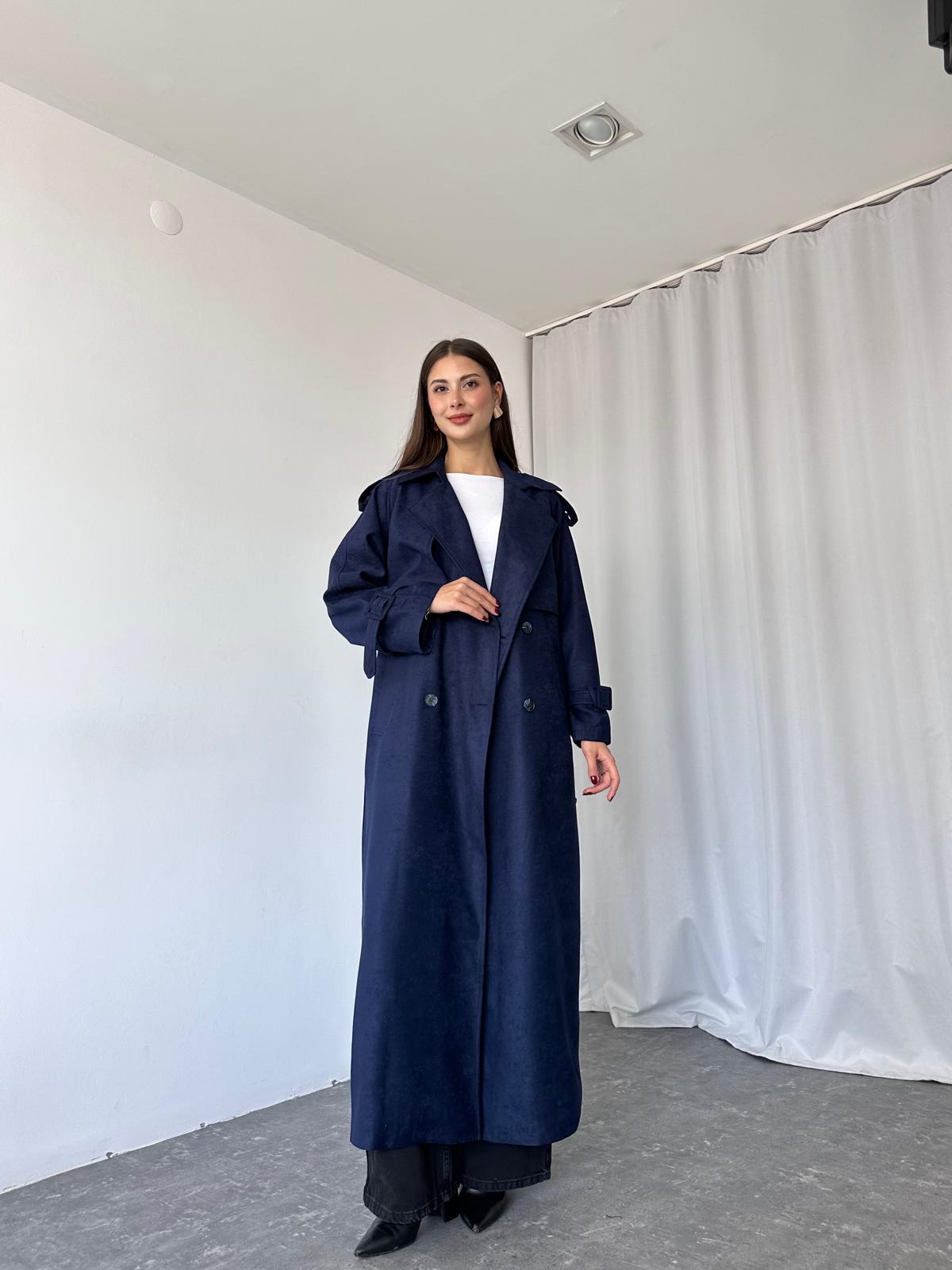 Kadın Lacivert Premium Süet Trençkot