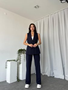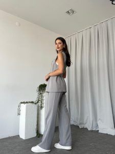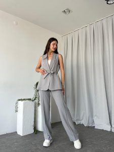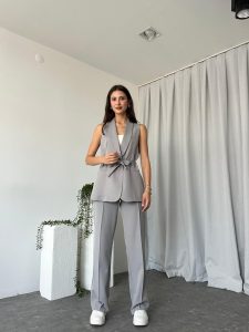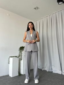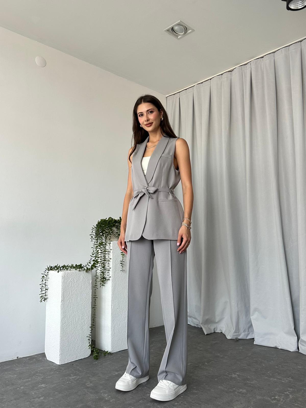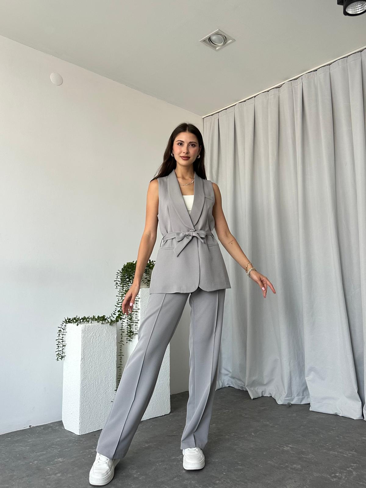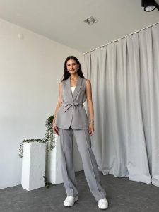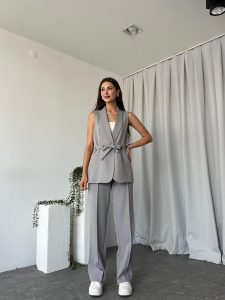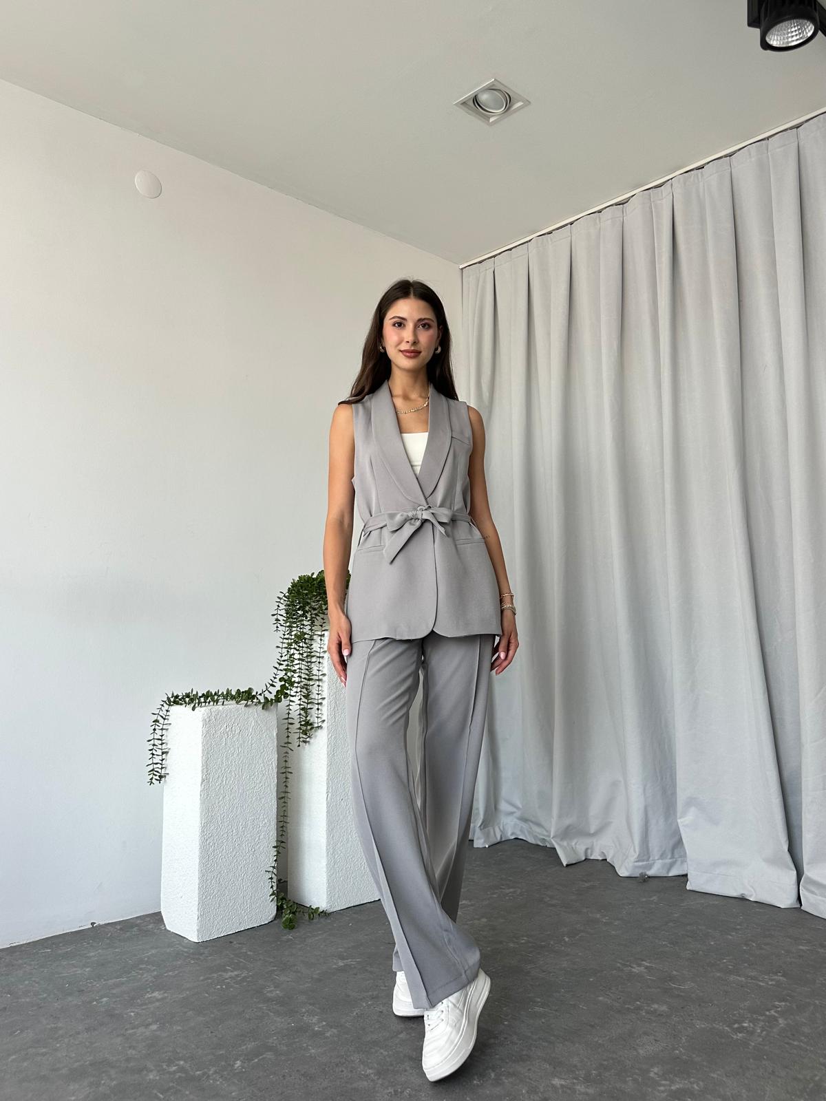 Kadın Leila Gri Yelek Pantolon Takım
