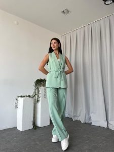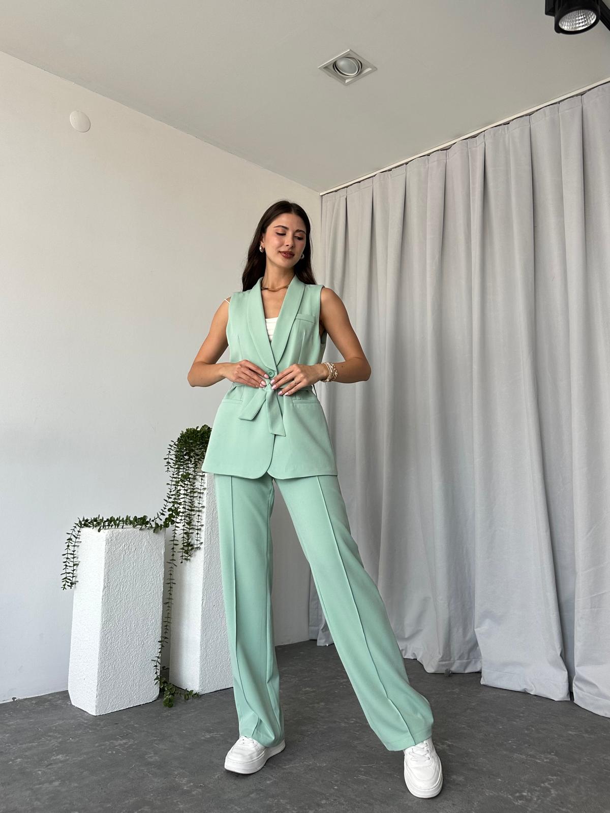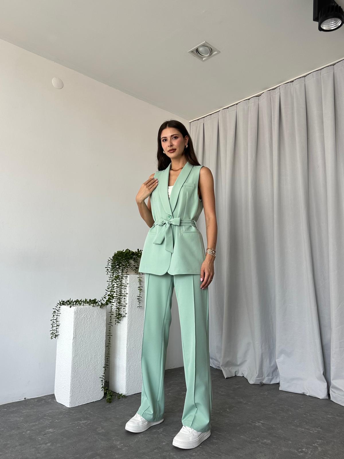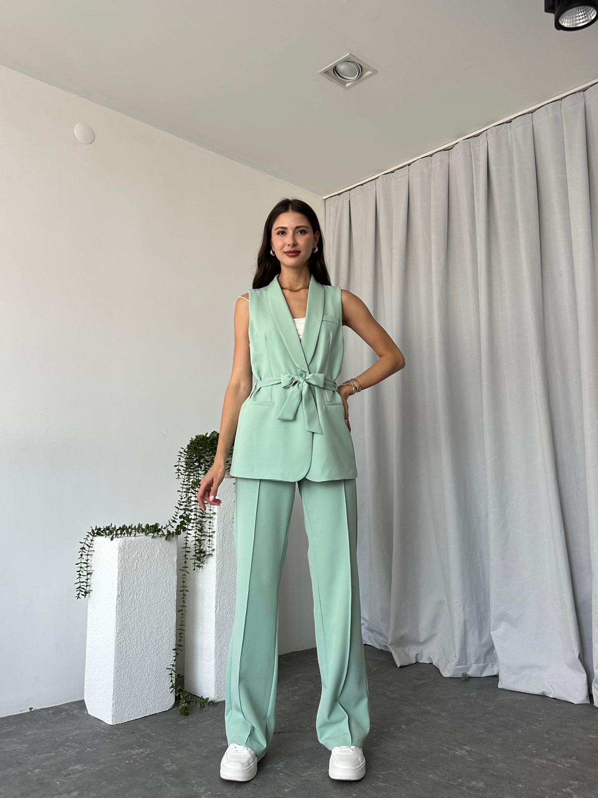Kadın Leila Mint Yeşili Yelek Pantolon Takım