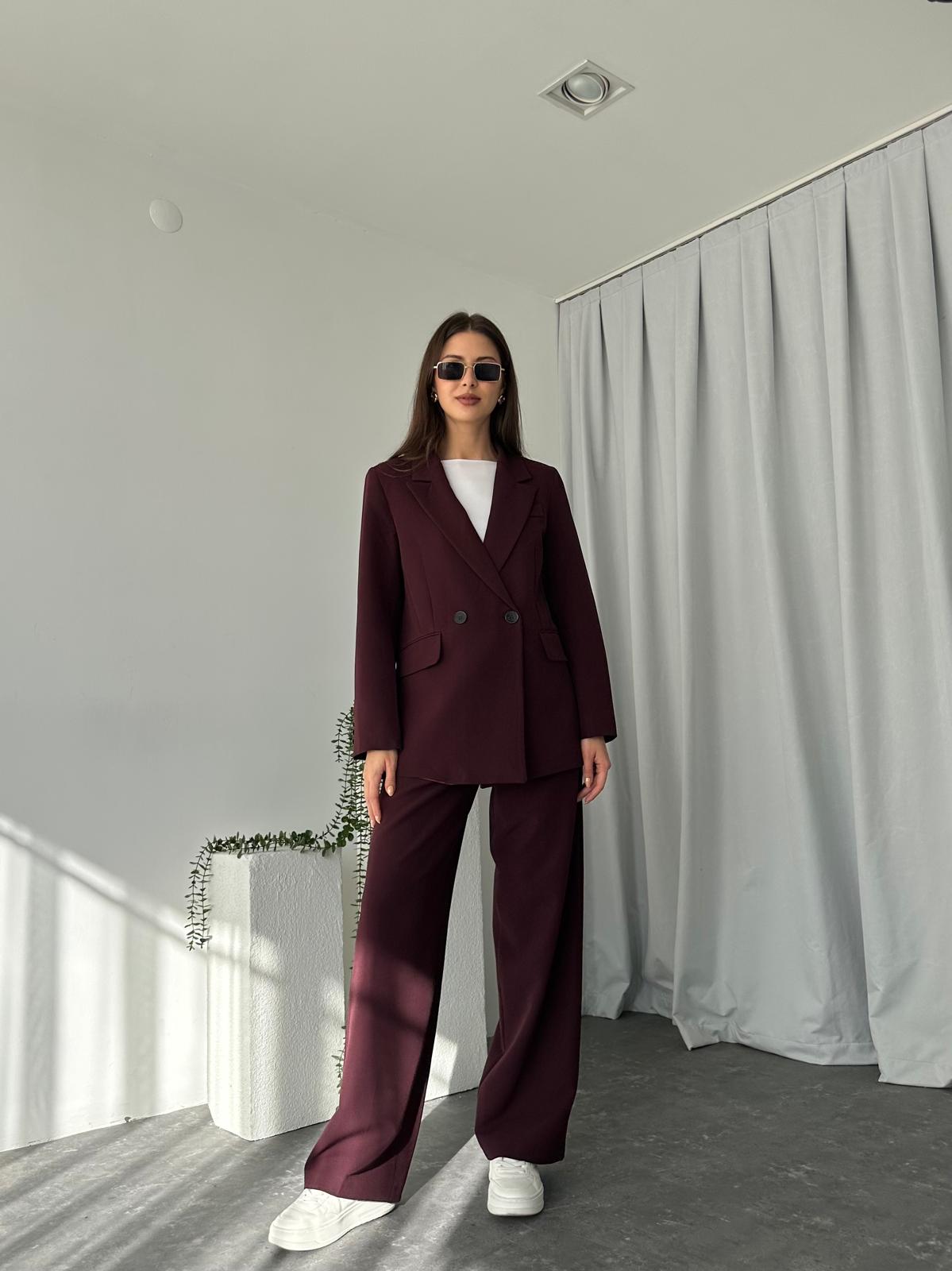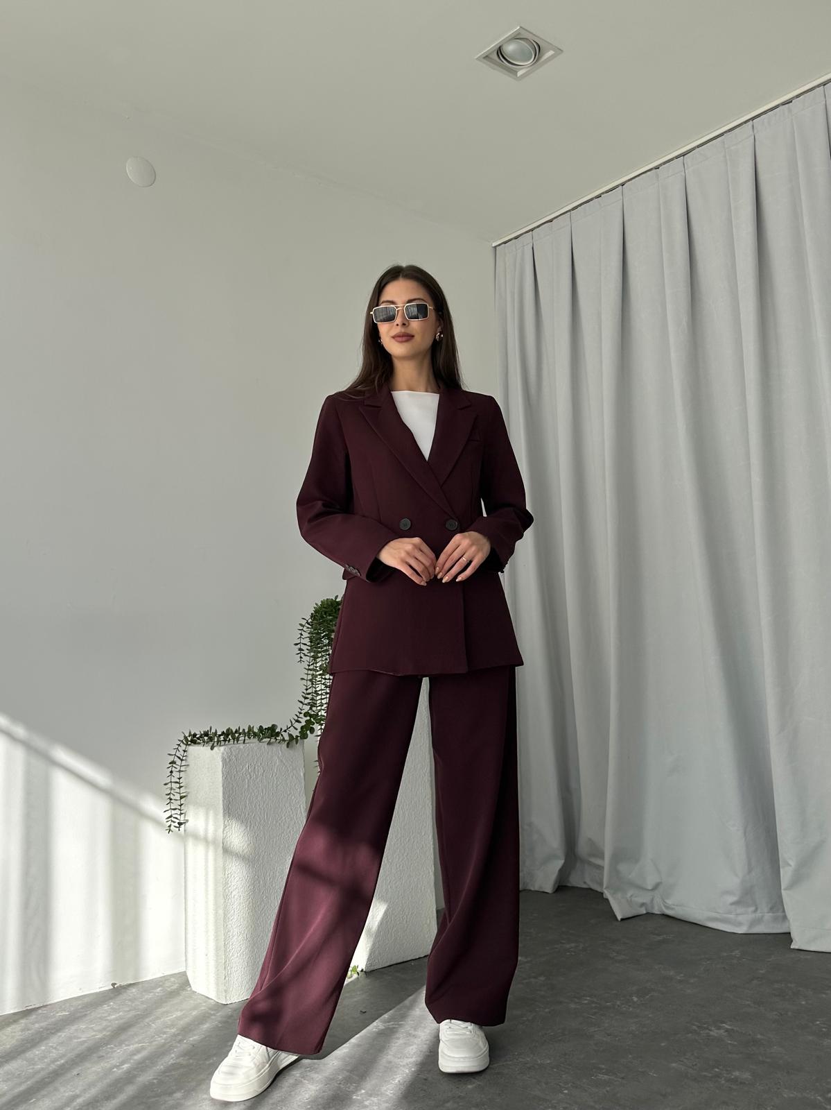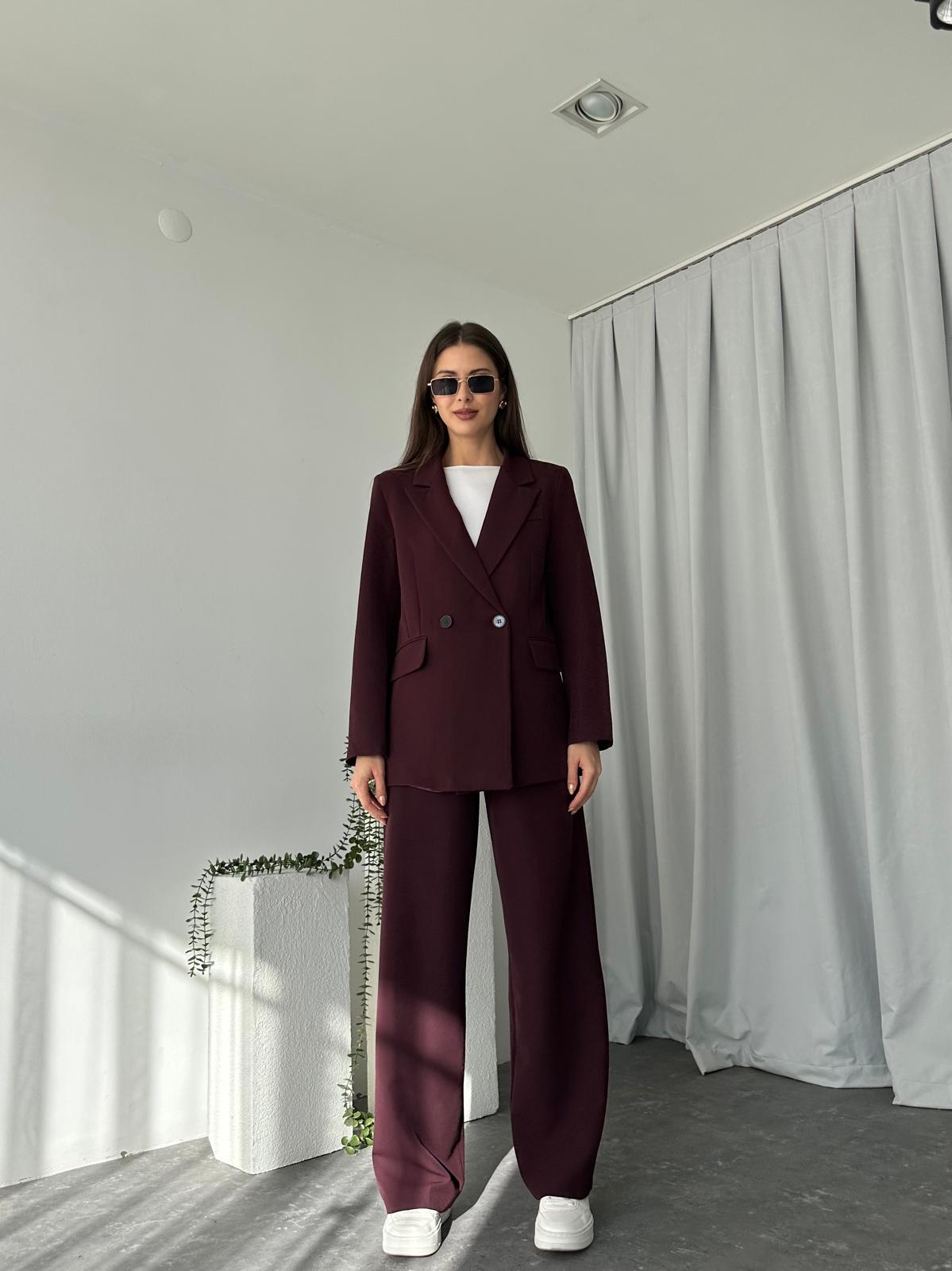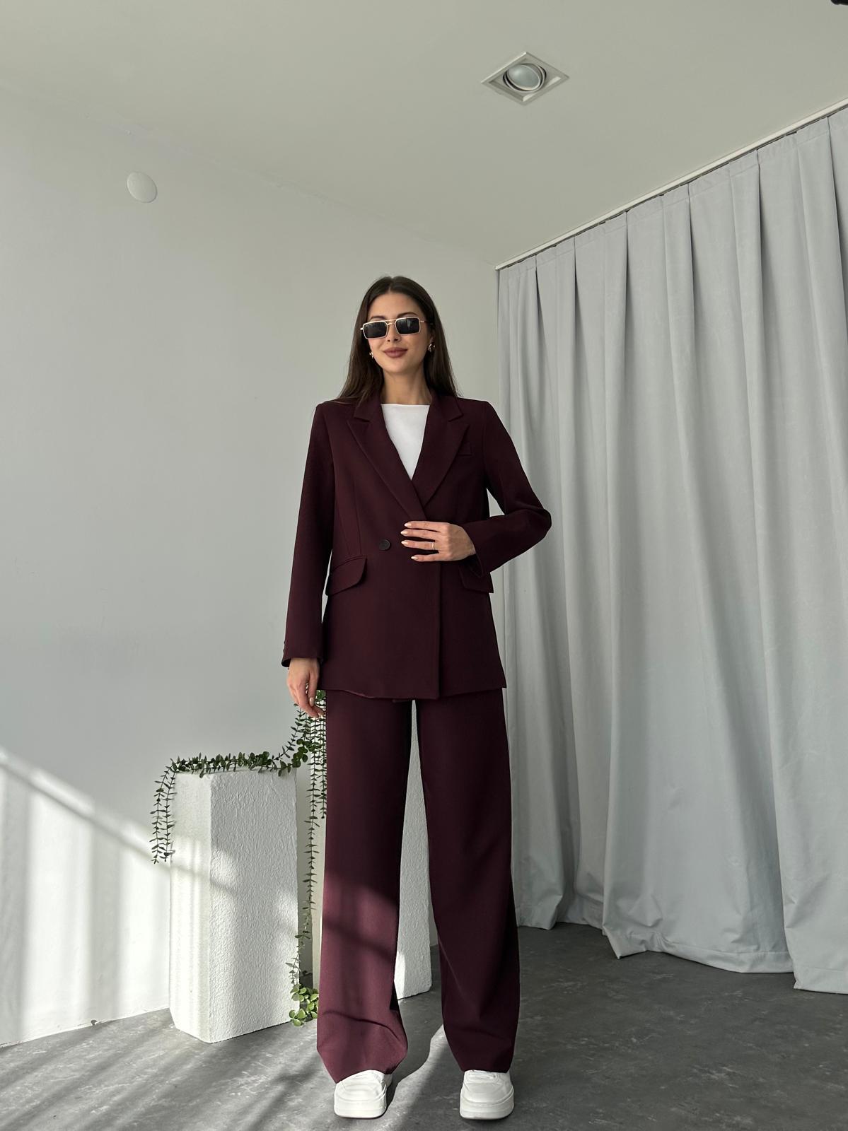 Kadın Mürdüm Premium Ceket-Pantolon Takım