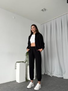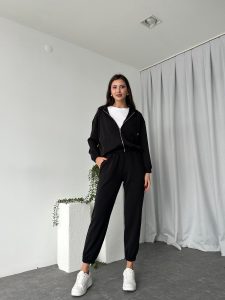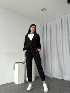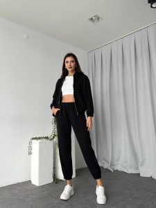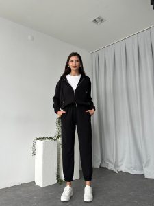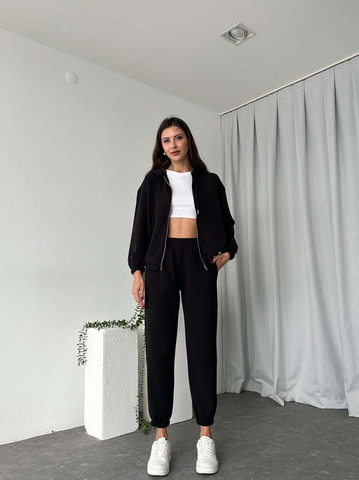 Kadın Oys Fermuarlı Siyah Eşofman Takımı