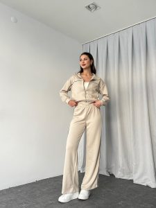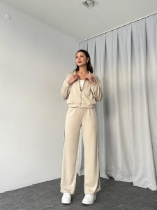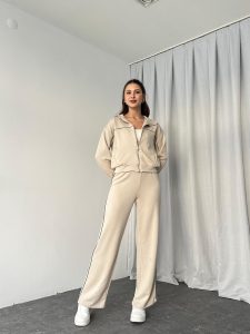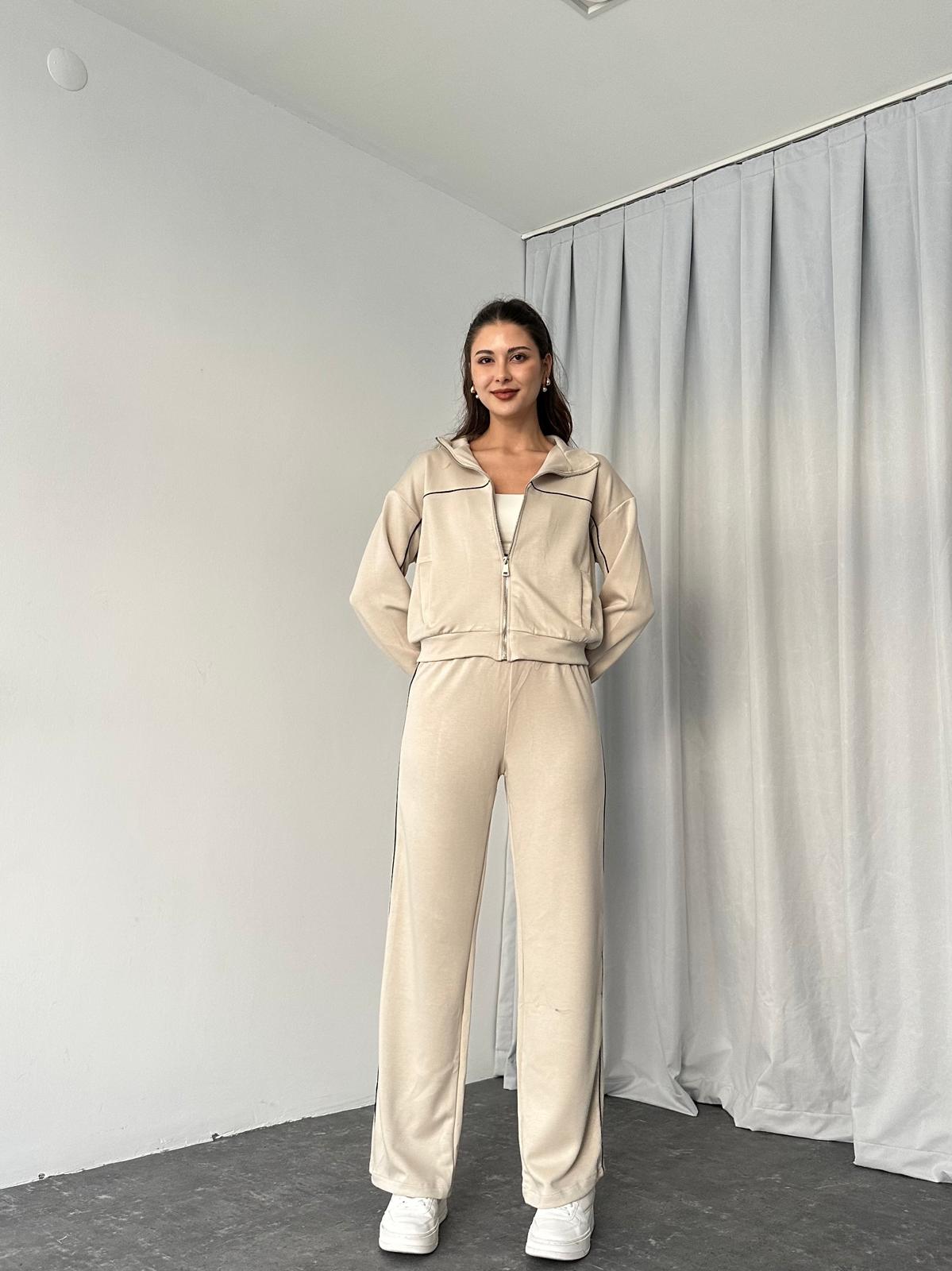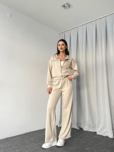 Kadın Oys Fermuarlı Taş Rengi Eşofman Takımı