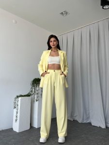 Kadın Sarı Oversize Ceket Pantolon Takım