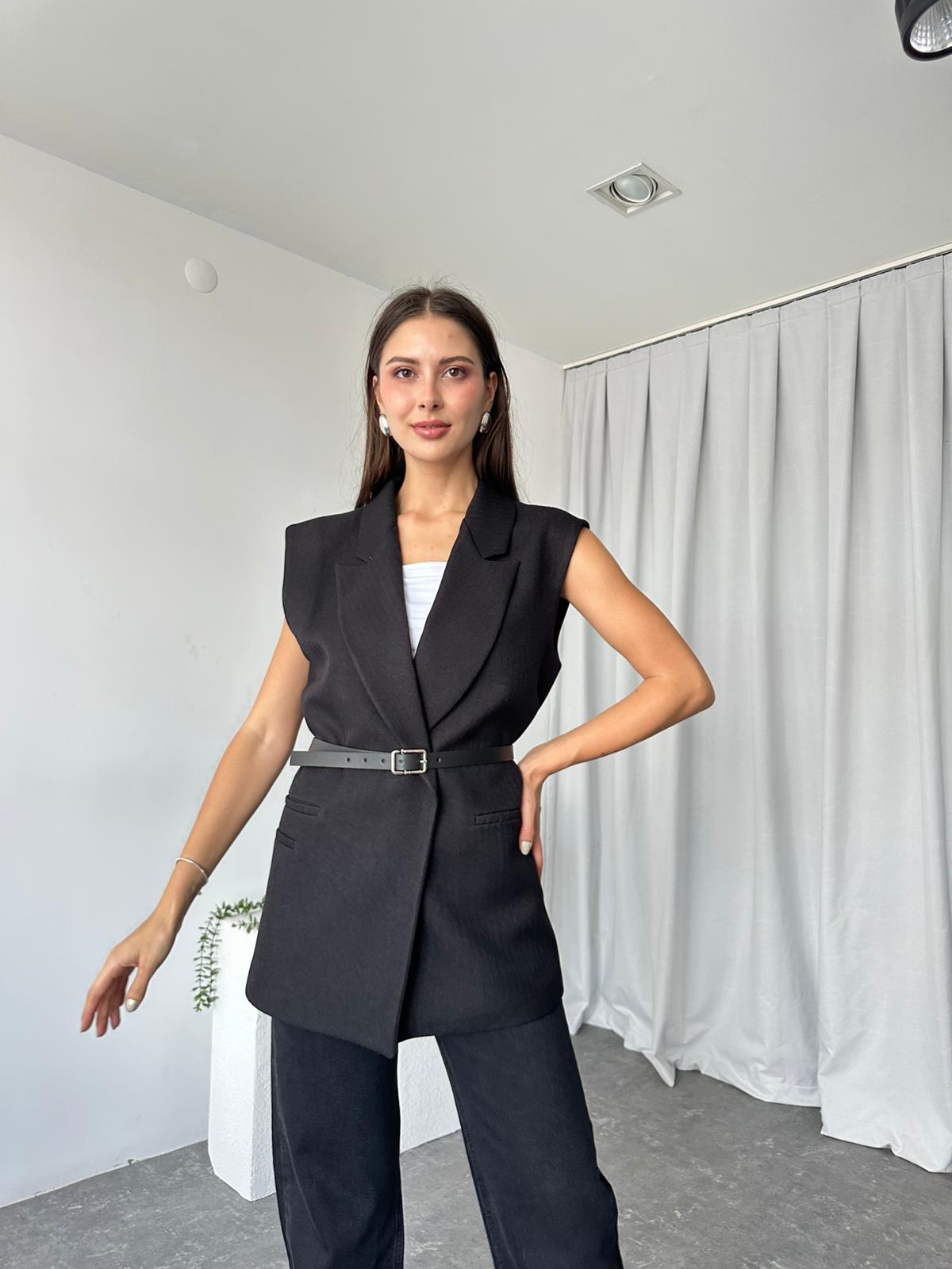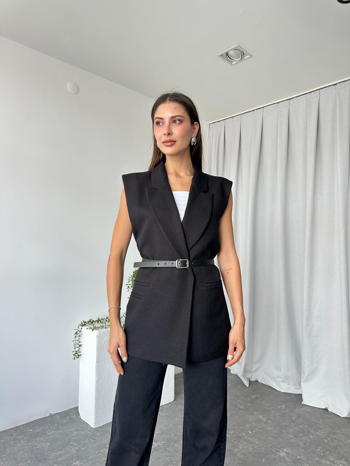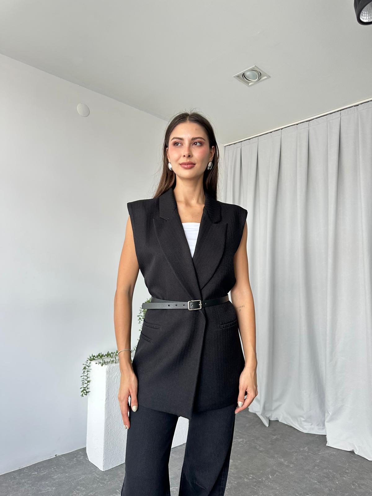 Kadın Siyah Yün Efekt Yelek