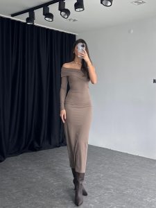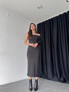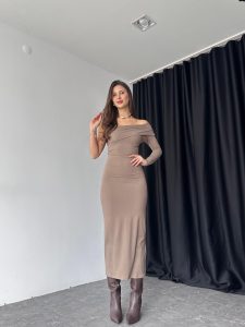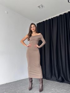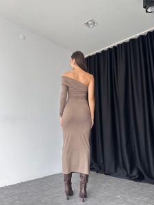 Kadın Vizon Tek Omuz Elbise