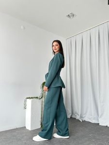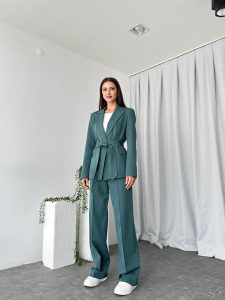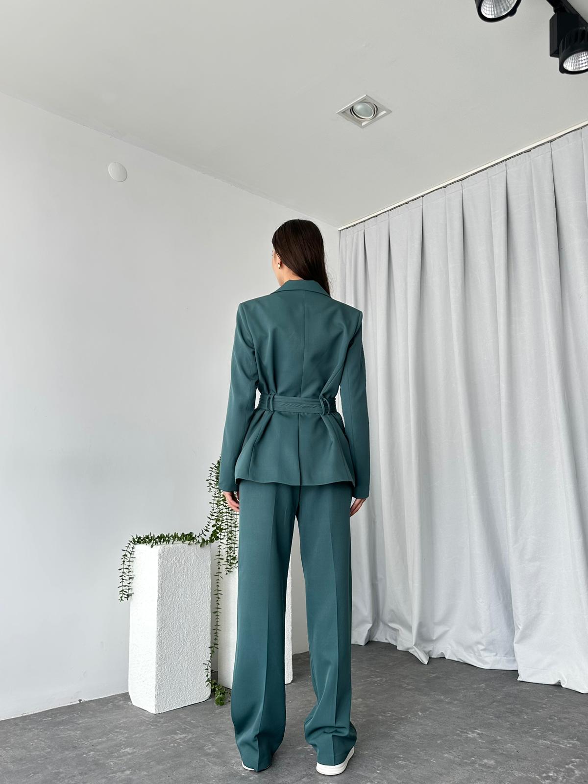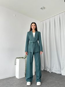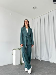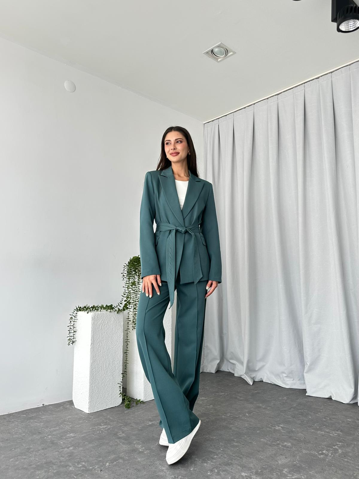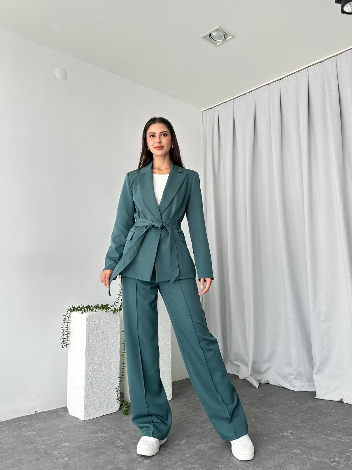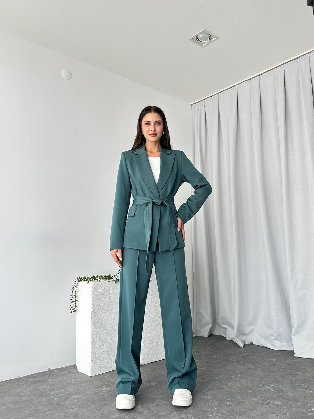Kadın Yeşil Kuşaklı Ceket Pantolon Takım