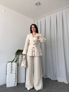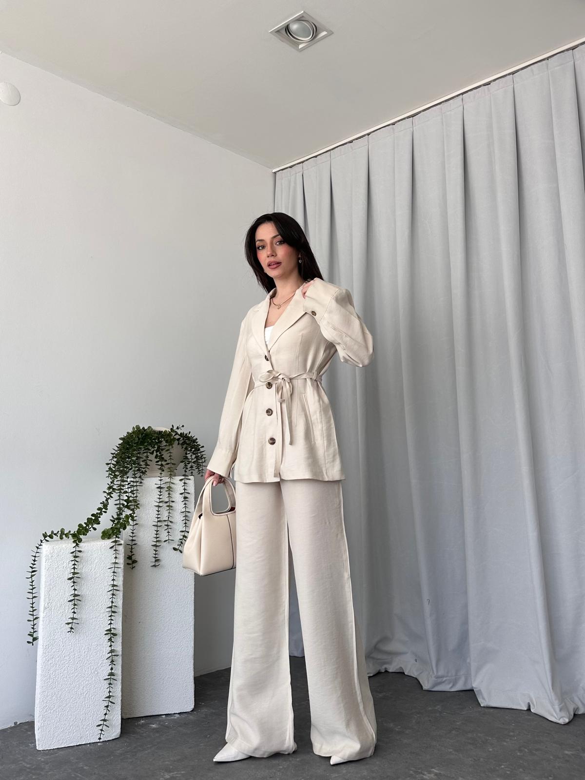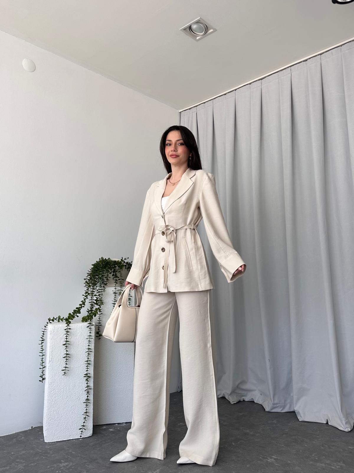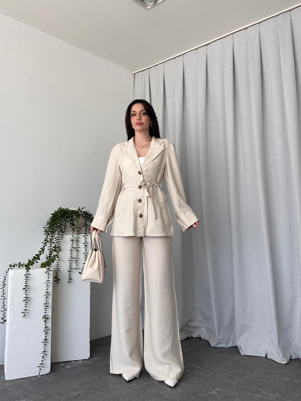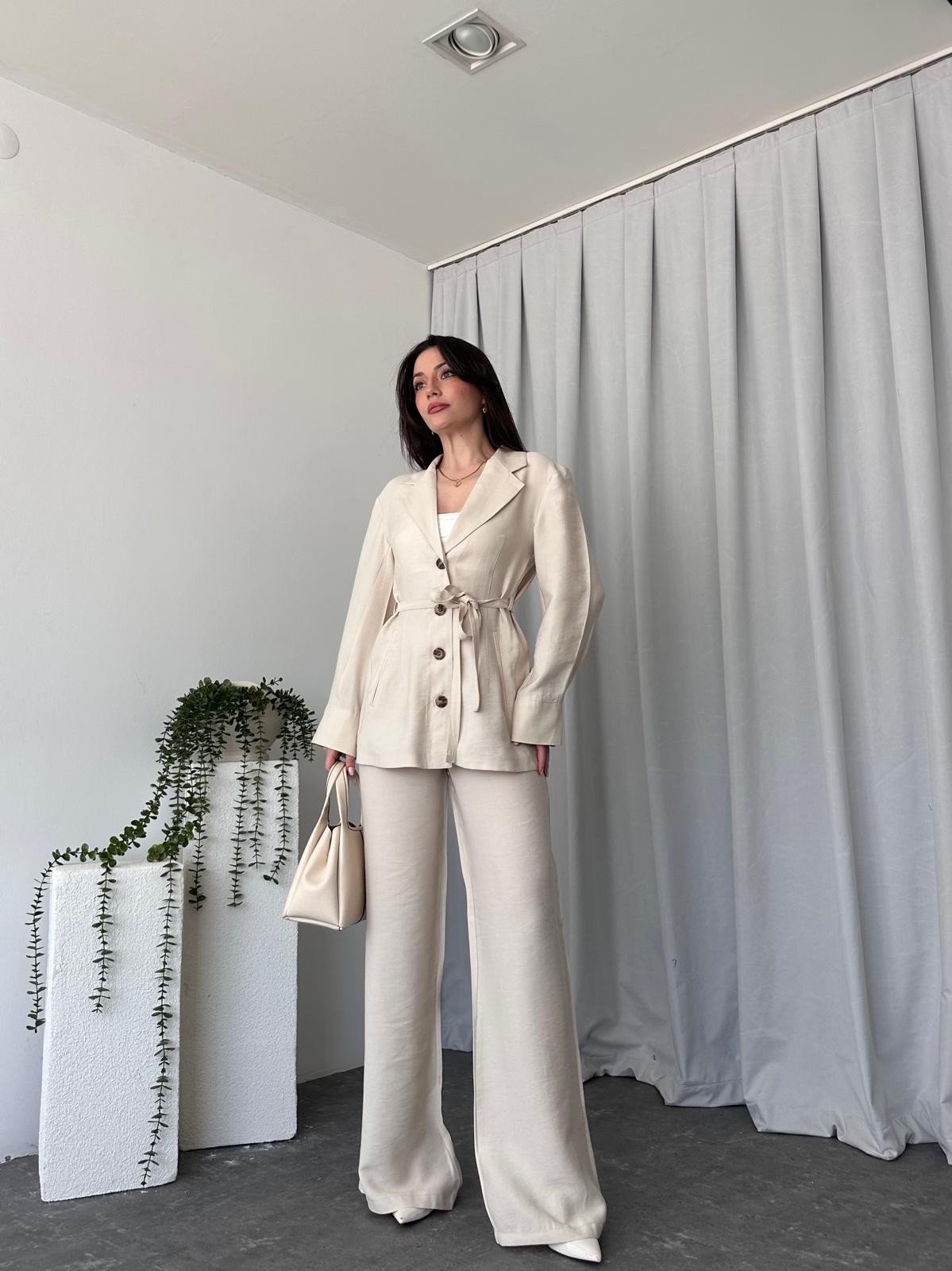 Tensel Kumaş Taş Rengi Ceket-Pantolon Takım