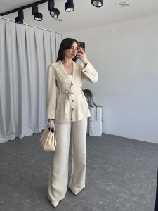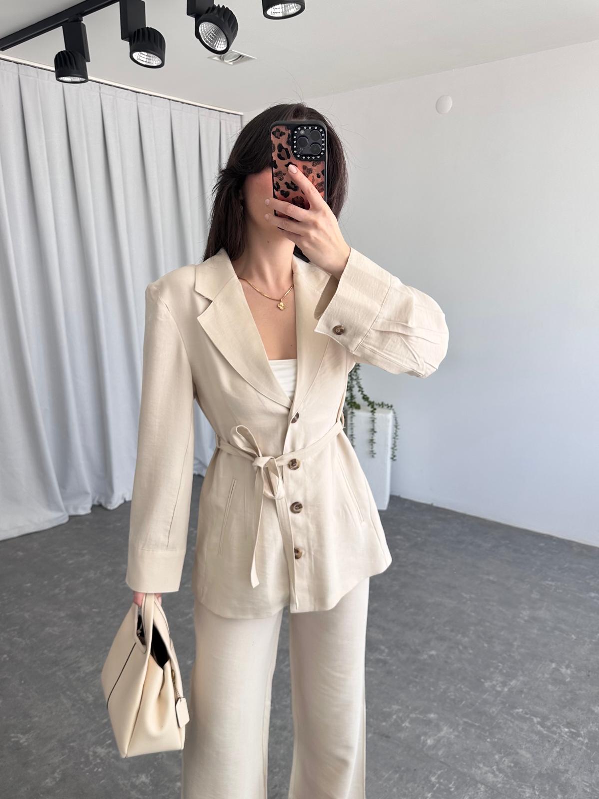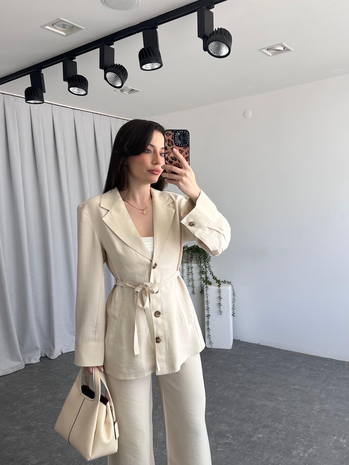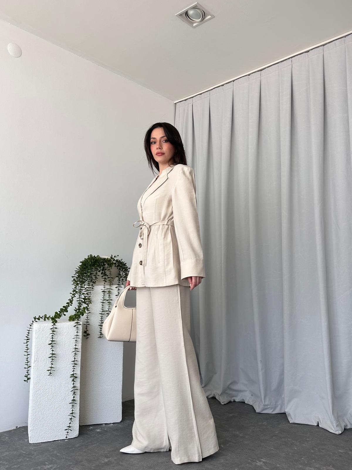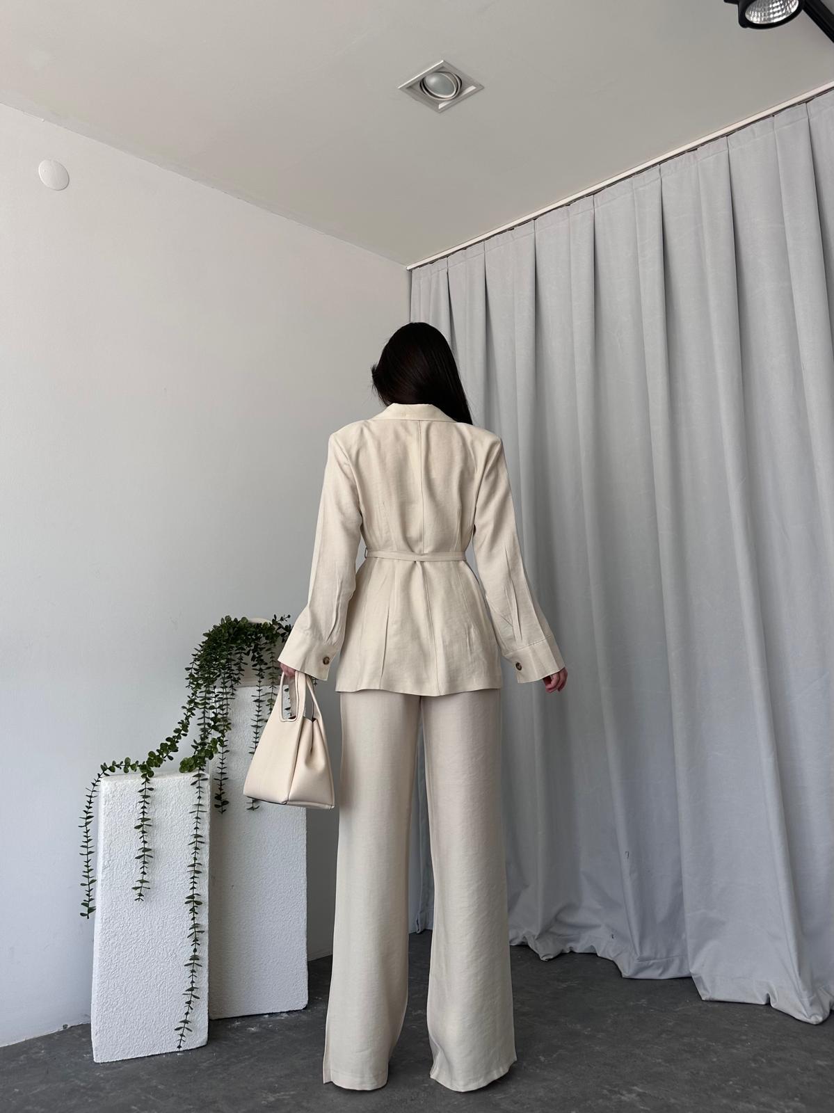 Tensel Kumaş Taş Rengi Ceket-Pantolon Takım