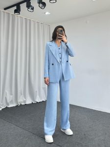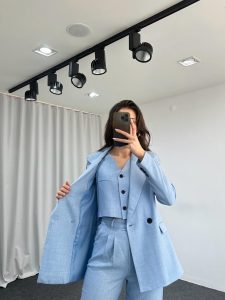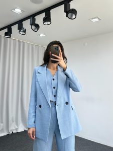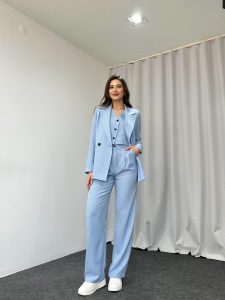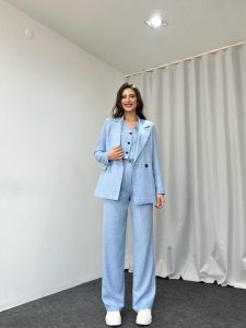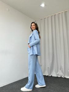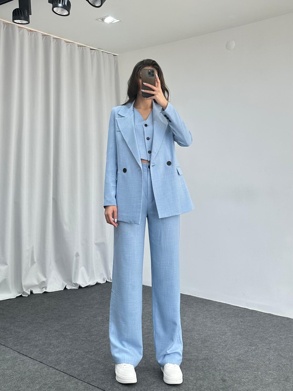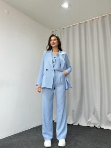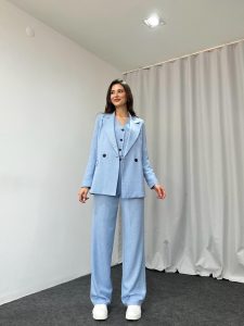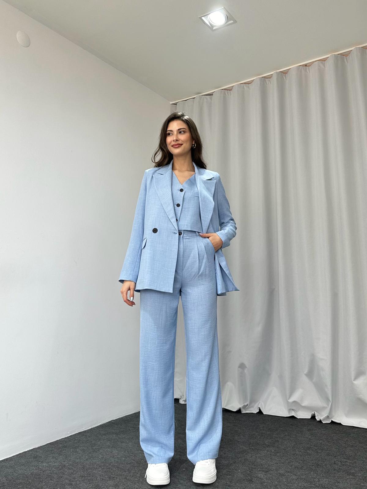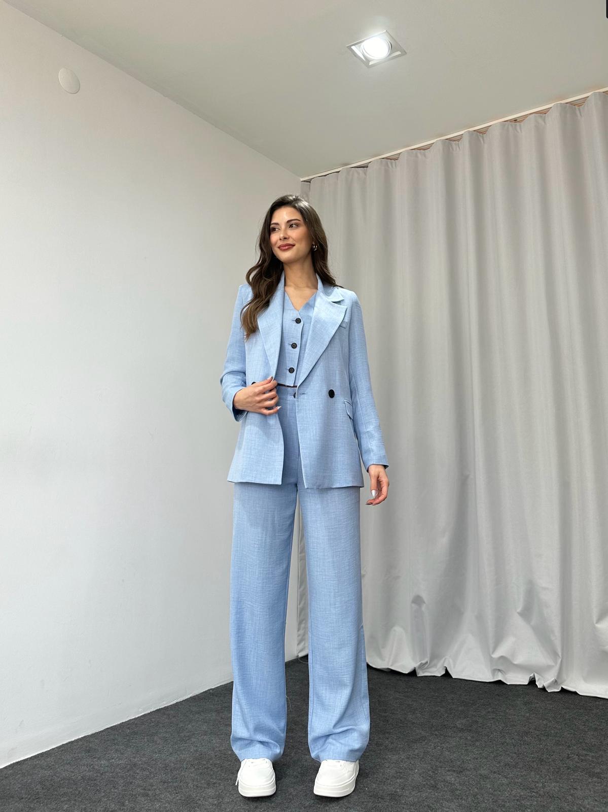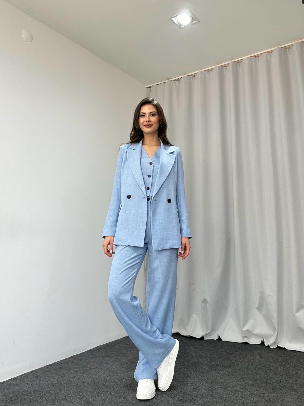 Üçlü Keten Takım (Bebek Mavisi)